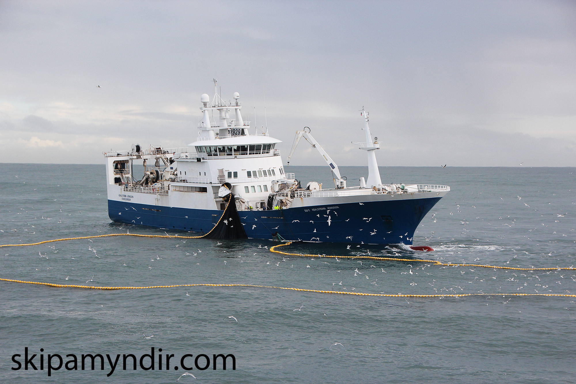 Aðalsteinn Jónsson SU 11 er hér með nótina úti á síðustu loðnuvertíð en myndina tók frændi minn Þorsteinn Eyfjörð skipverji á Hákonui EA 250 frá Grenivík.