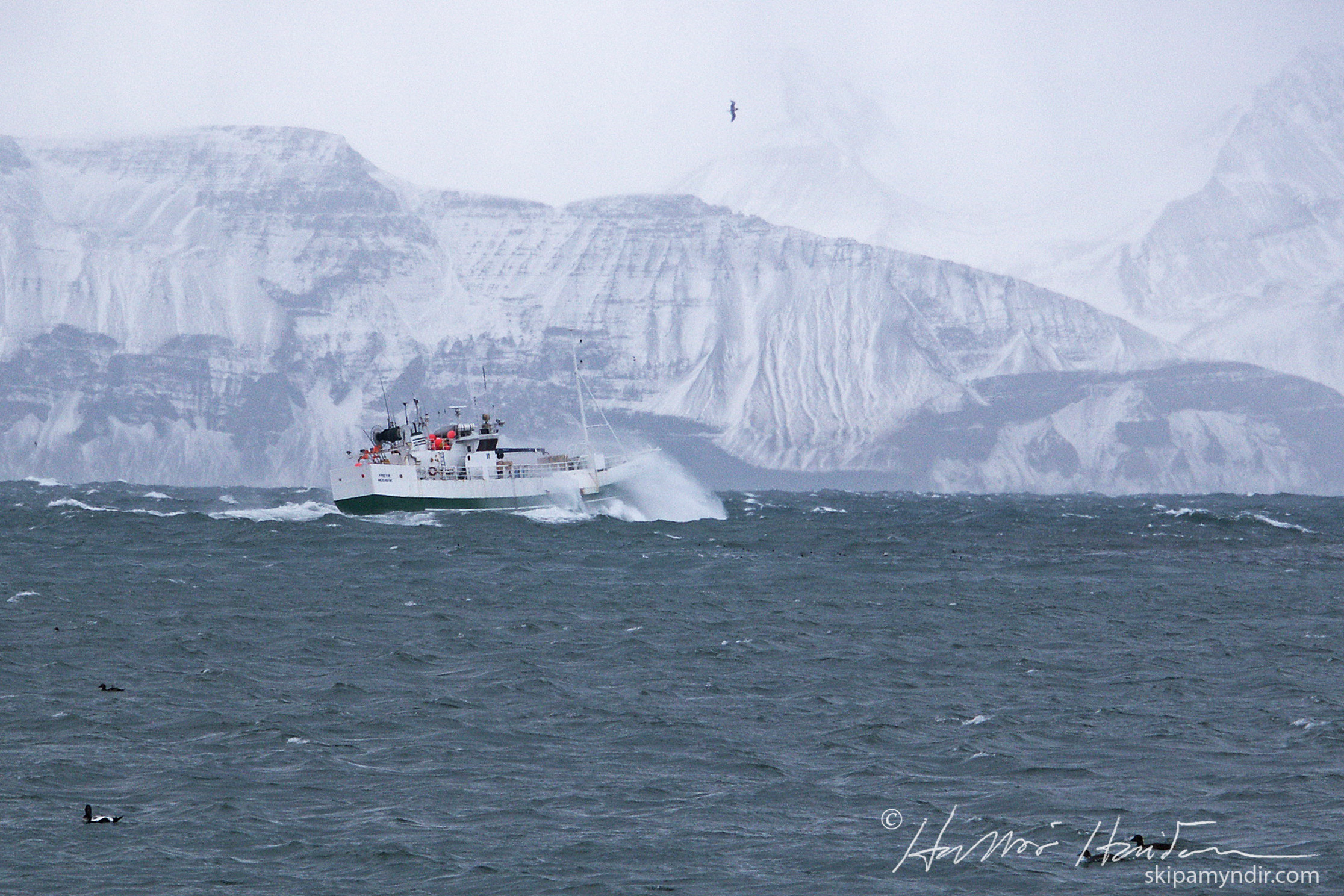 Freyr ÞH 1 siglir hér út Skjálfandaflóa eftir löndun á Húsavík en hann var í eigu Vísis h/f í Grindavík.