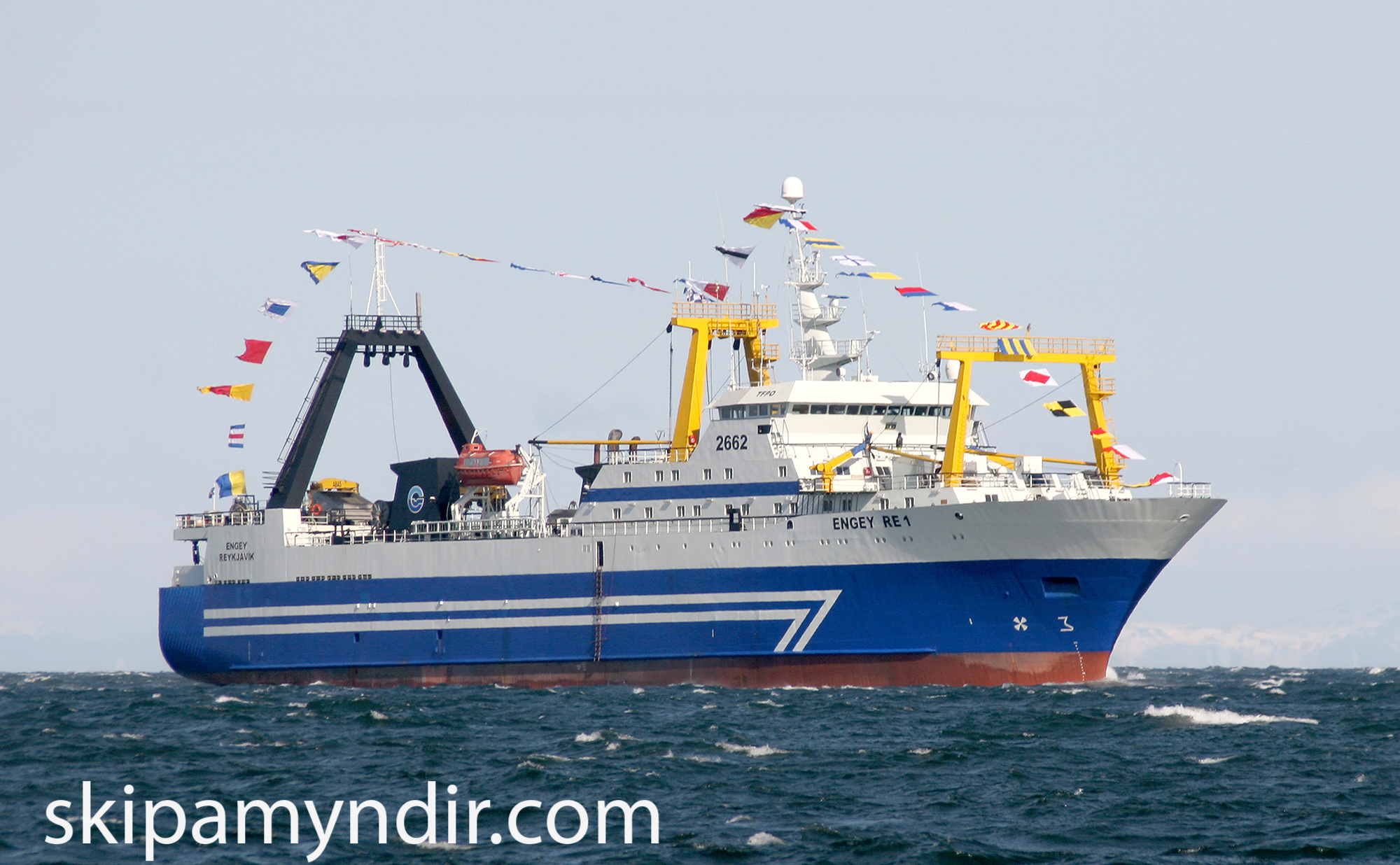 Frystitogarinn Engey RE 1 kom til heimahafnar í Reykjavík þann 22. maí árið 2005 og þá tók Alfons þessa mynd.