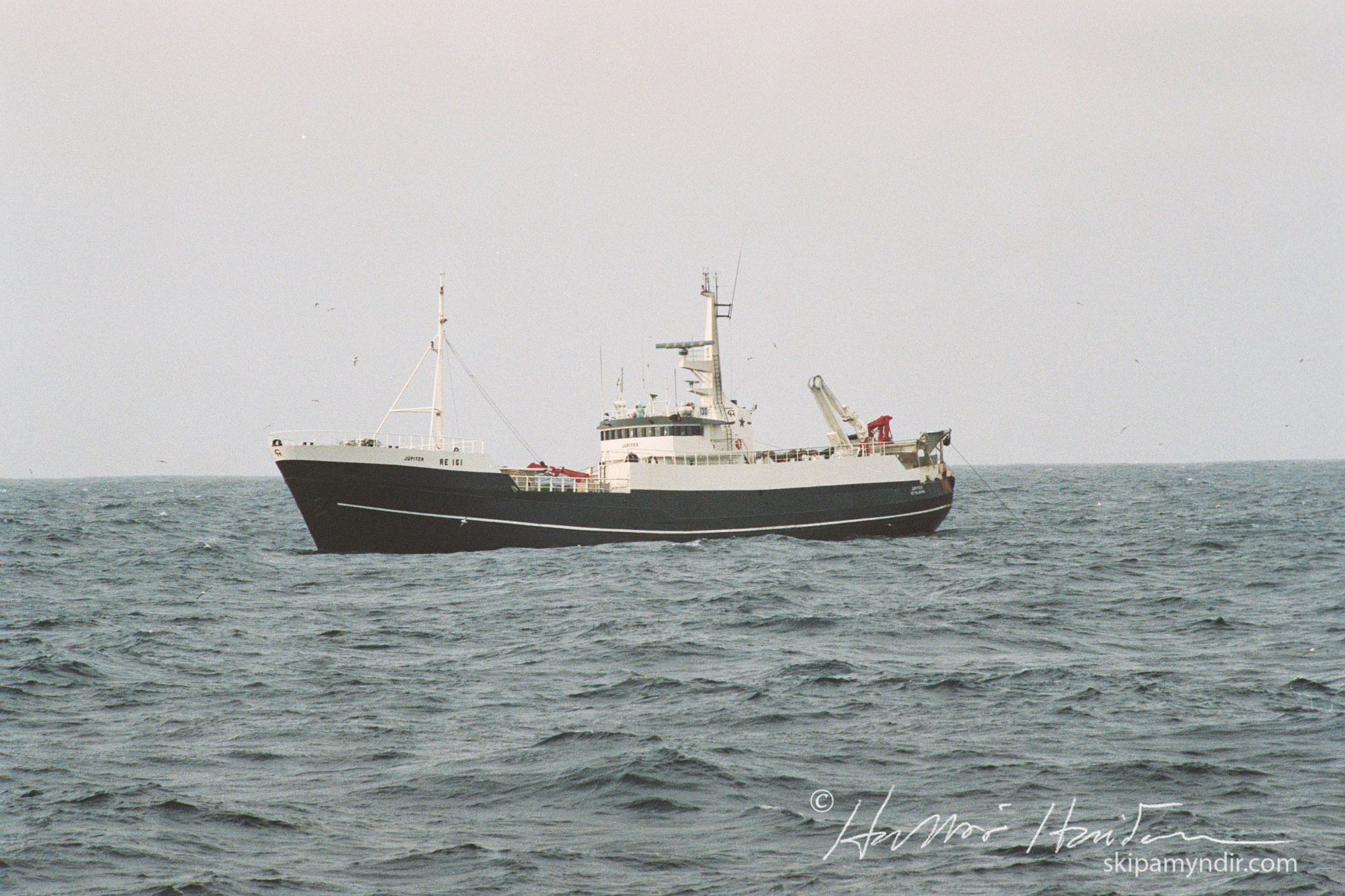 Júpíter RE 161 er hér að rækjuveiðum úti fyrir Norðurlandi, skömmu fyrir 1990.