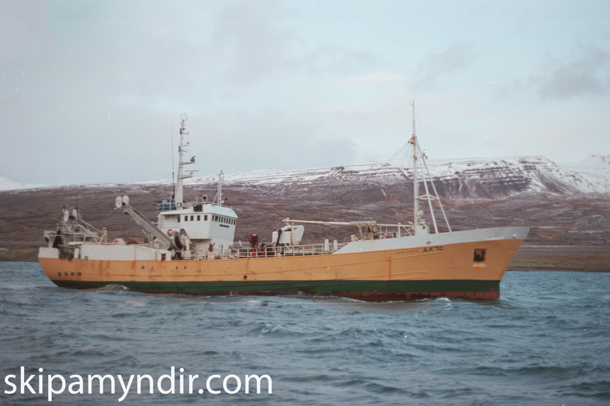 Þessa mynd af Bjarna Ólafssyni AK 70 tók Hreiðar Olgeirsson skipstjóri á Kristbjörgu ÞH 44 haustið 1982 eða 1983. Þá stundaði Kristbjörg síldveiðar með lagnet og landaði m.a á Vopnafirði.