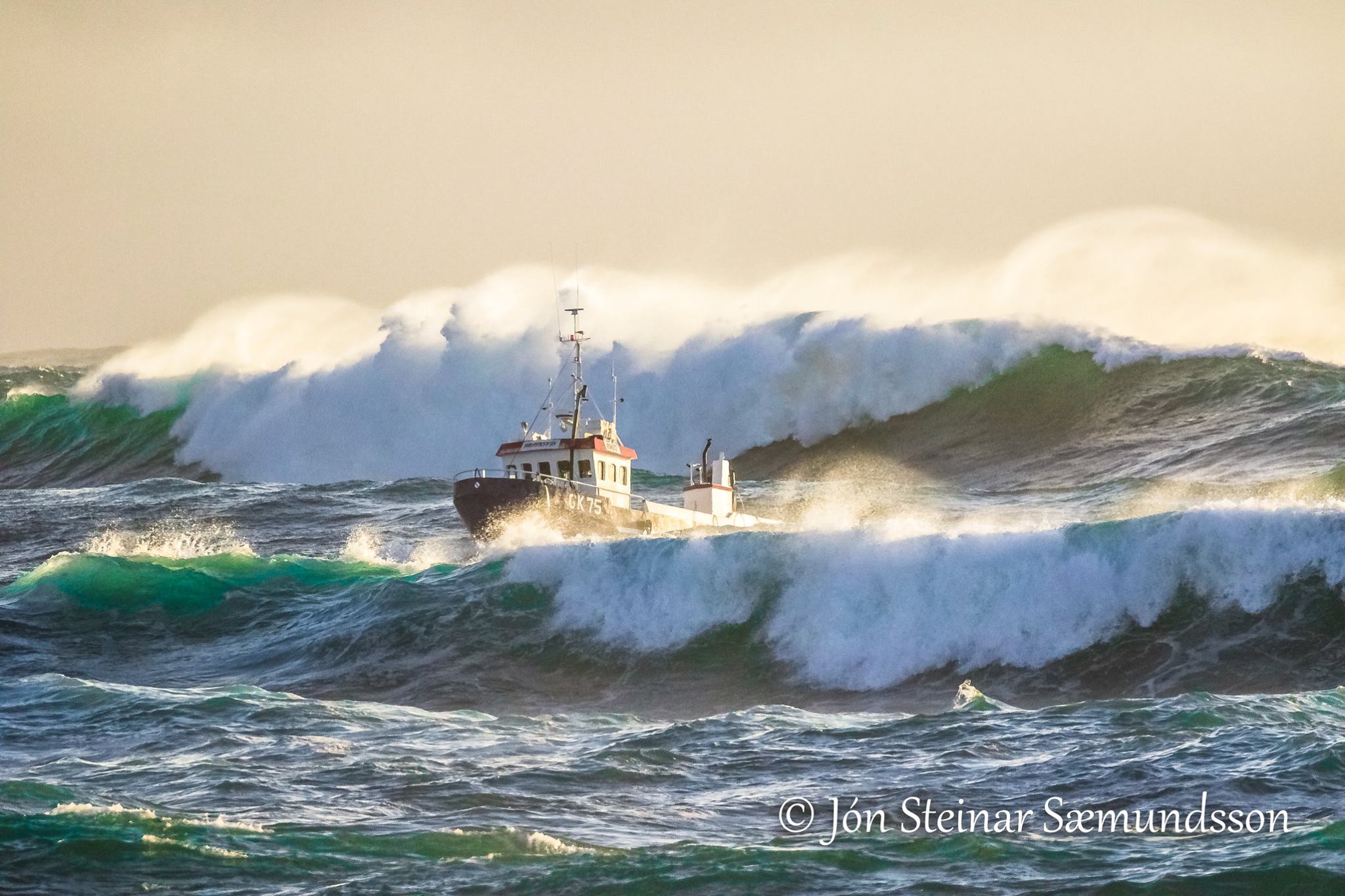 Myndirnar tók Jón Steinar í gær þegar Hraunsvíkin kom að landi eftir að hafa skotist út og lagt netin þrátt fyrir þungan sjó.