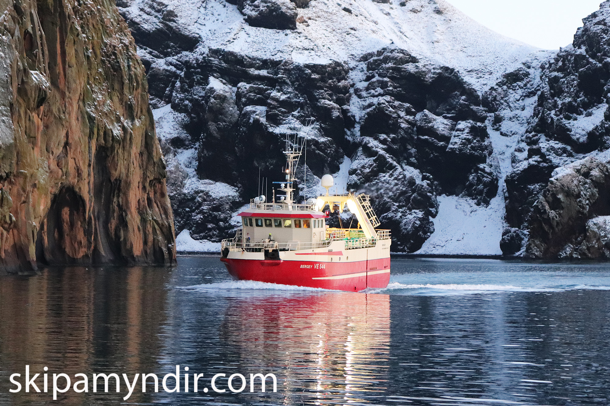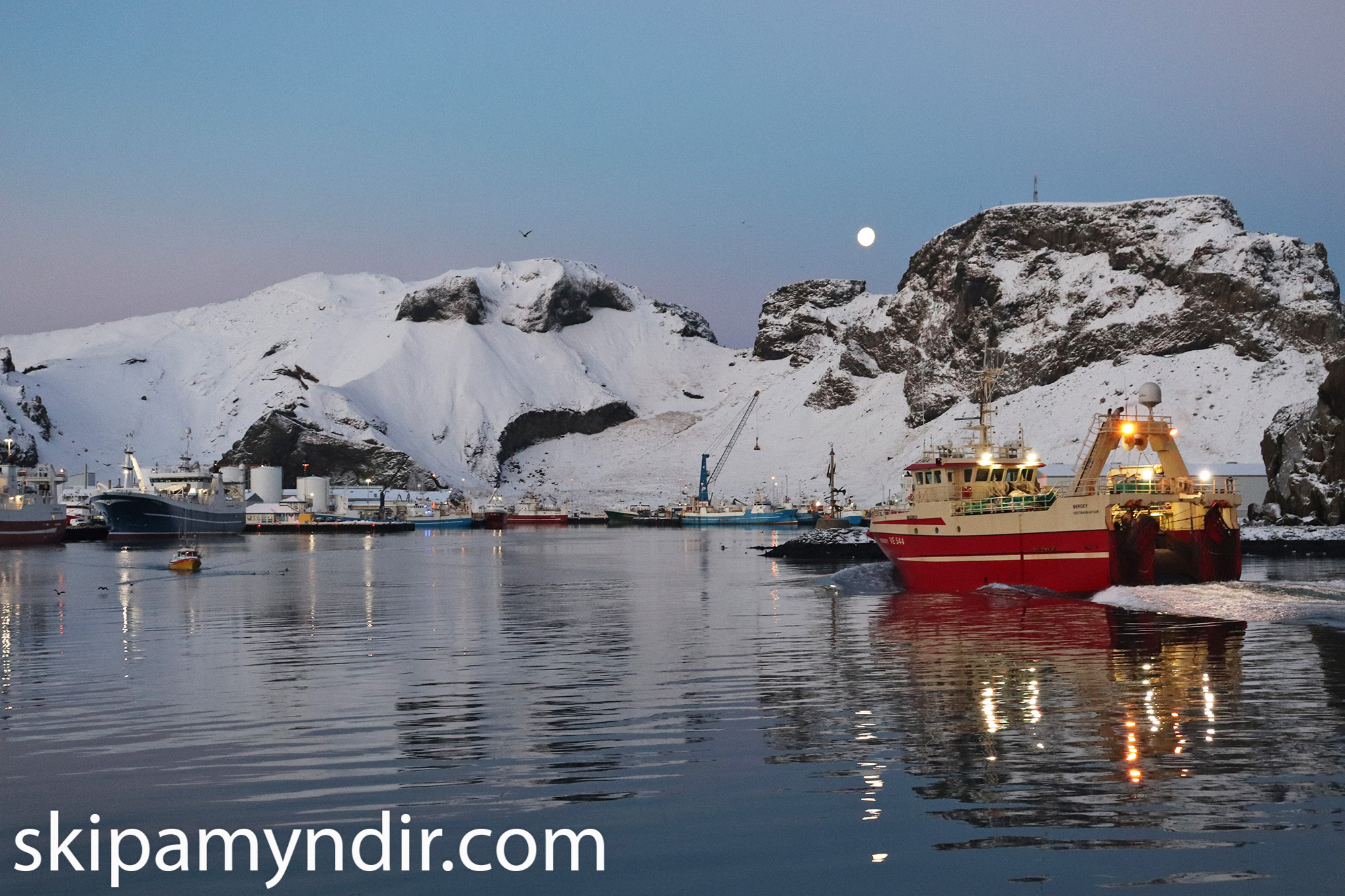 Það var fallegt veður í Vestmannaeyjum að morgni 23. janúar 2019 þegar Bergey VE 544 kom að landi. 46 ár síðan Vestmannaeyjagosið hófst.