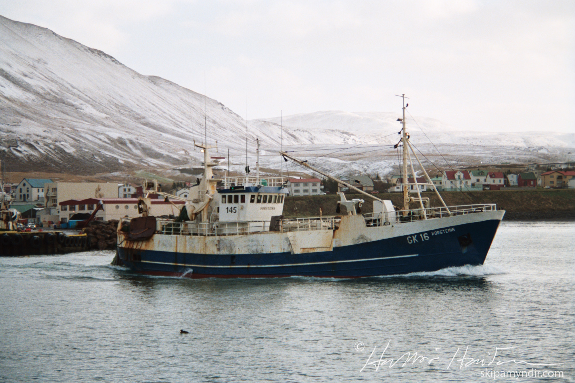 Þorsteinn GK 16 leggur hér úr höfn á Húsavík áleiðis á rækjumiðin úti fyrir Norðurlandi