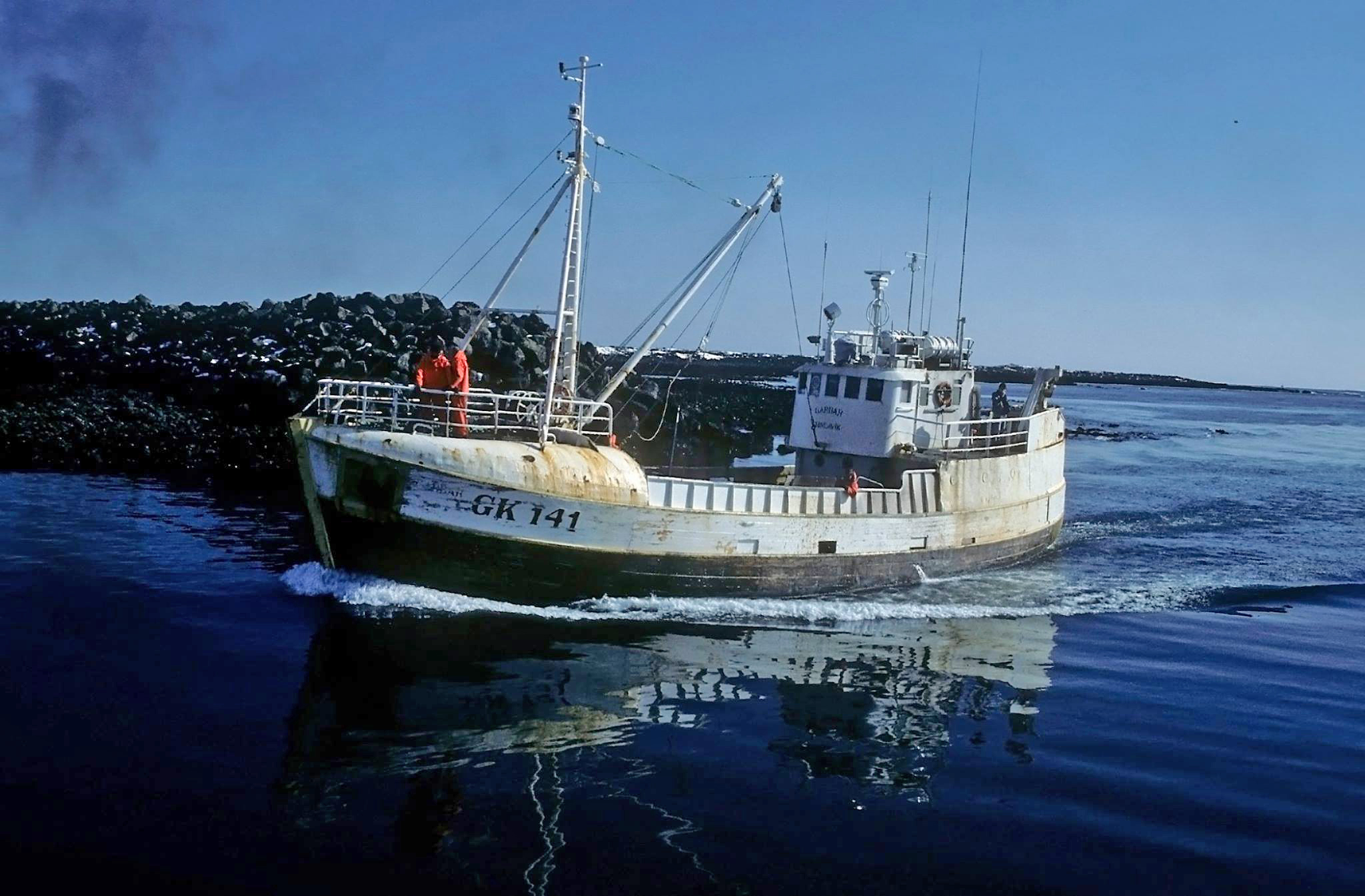 Garðar GK 141 kemur hér til hafnar í Grindavík um árið en myndina tók Ágúst Guðmundsson.