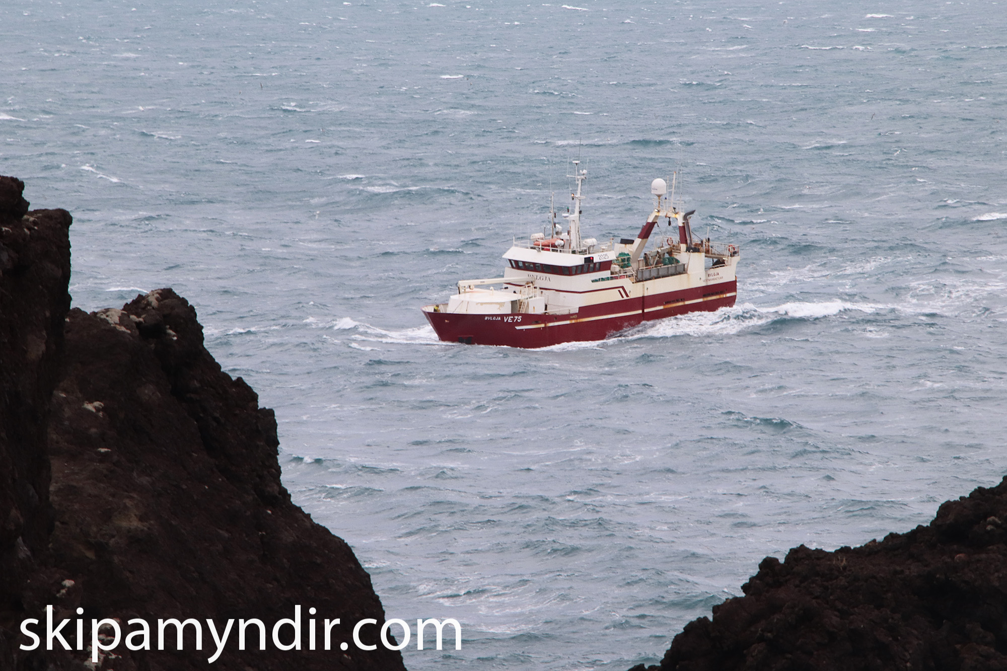 Hér sést togskipið Bylgja VE 75 koma til hafnar í gær en Ós ehf. hefur leigt skipið um tíma.