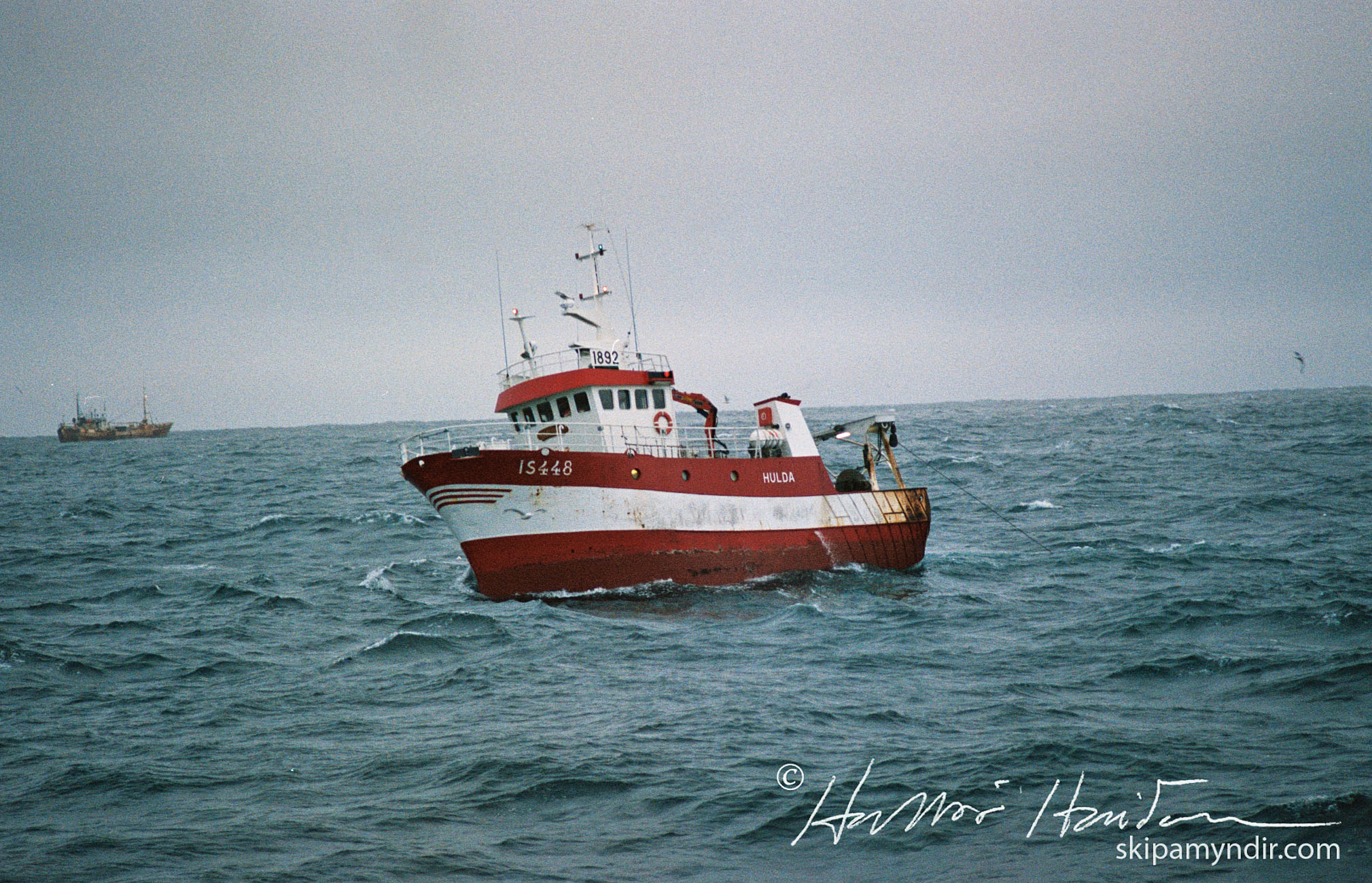 Rækjubáturinn Hulda ÍS 448 frá Ísafirði er hér á togslóðinni úti fyrir Norðurlandi árið 1989 að mig minnir.