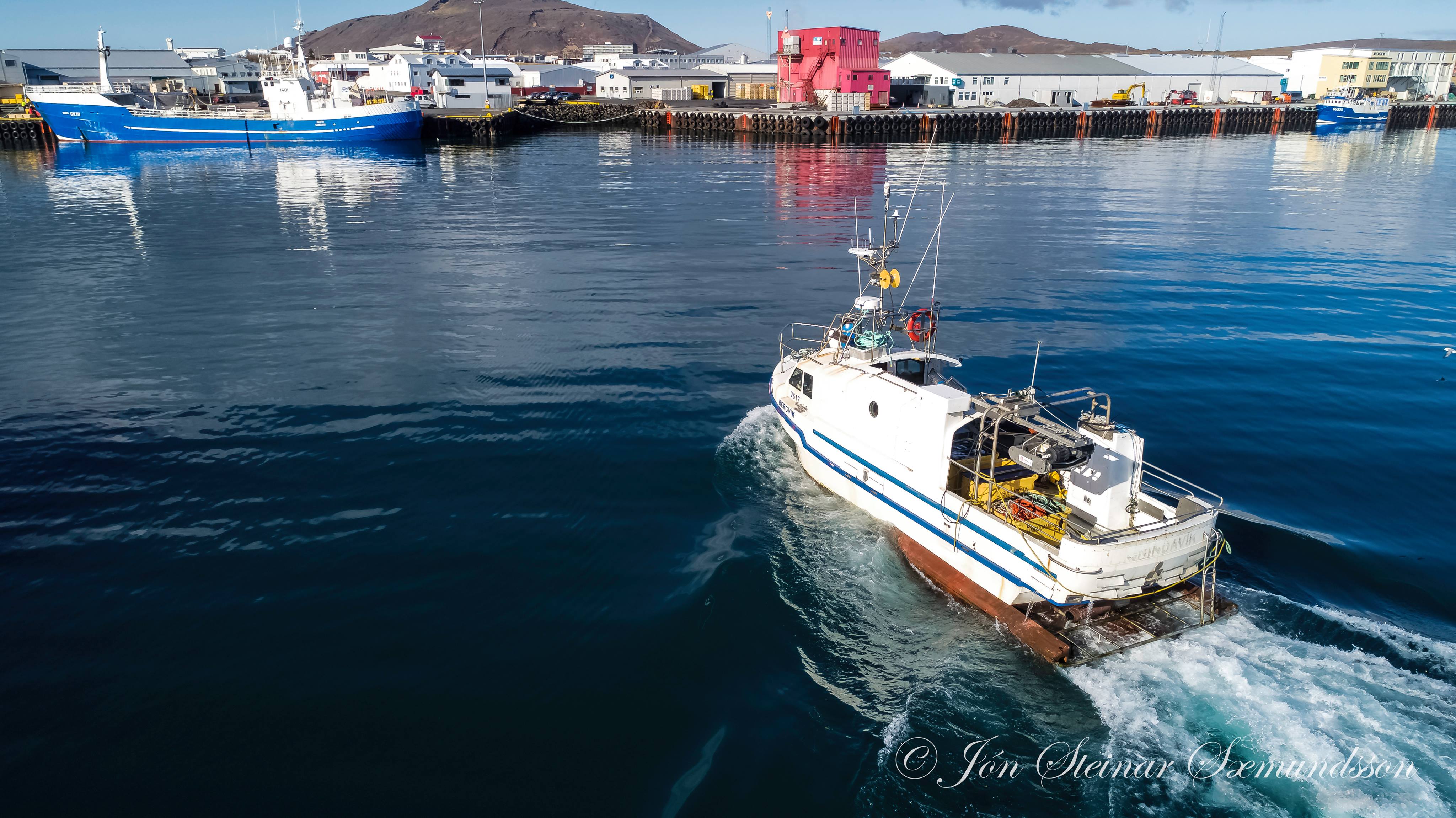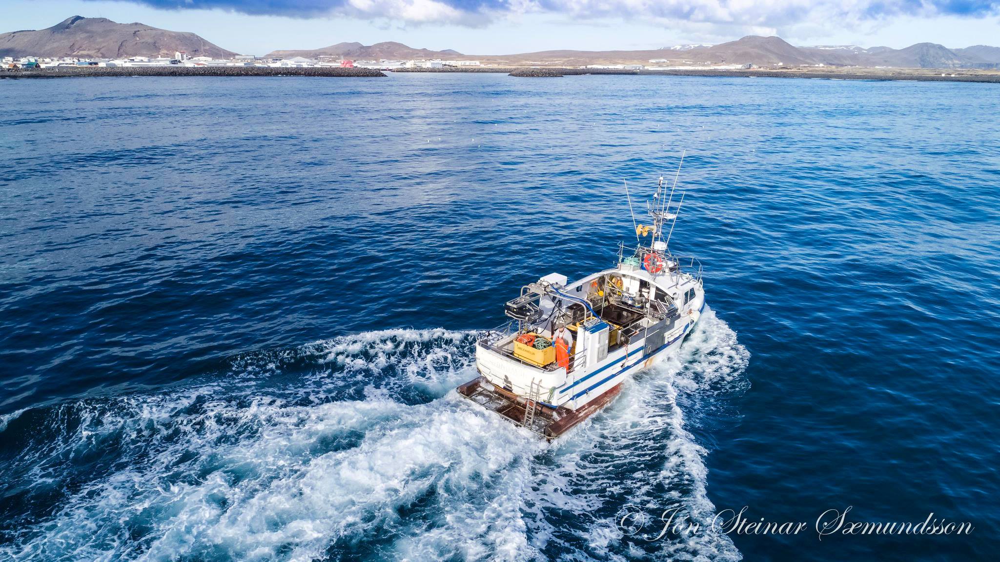 Bergvíkin var að koma í gær austan af Hraunsvíkinni eftir að hafa dregið grásleppunetin og lagði eina trossu rétt vestan innsiglingarinnar til Grindavíkur áður en hún kom í land.