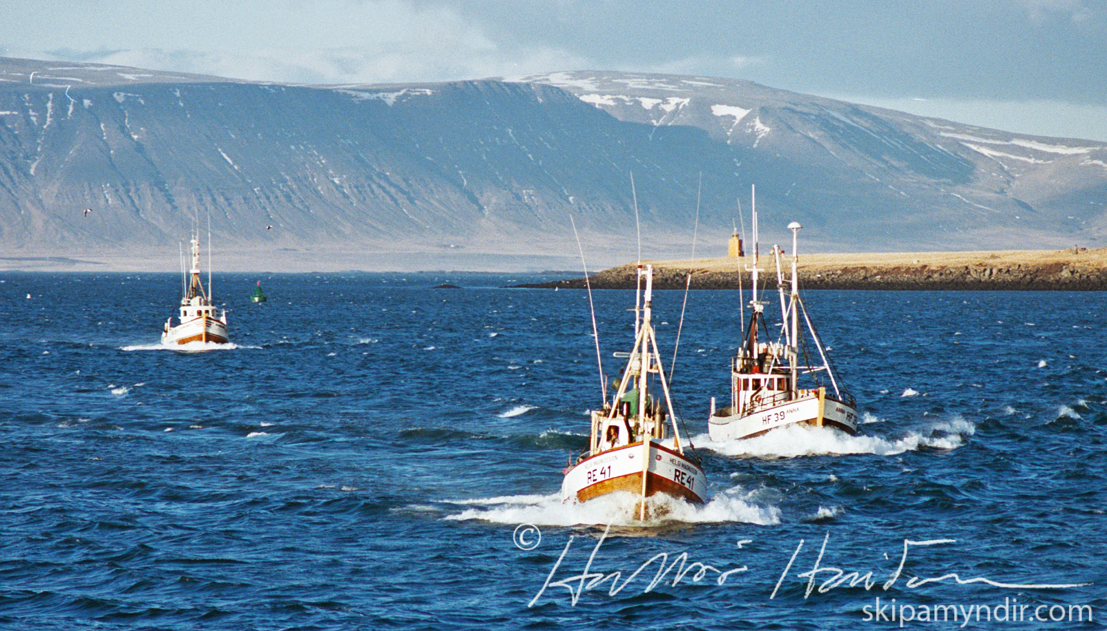 Hér birtast myndir sem ég tók í Reykjavík um miðjan níunda áratug síðustu aldar og sýna nokkra fiskibáta koma að landi.
