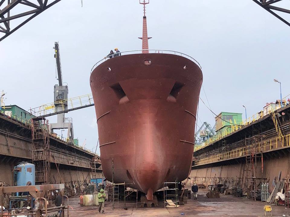 Stefn er að því að þetta glæsilega 45 metra langa og 10,5 metra breiða línuskip fari á flot á morgun.