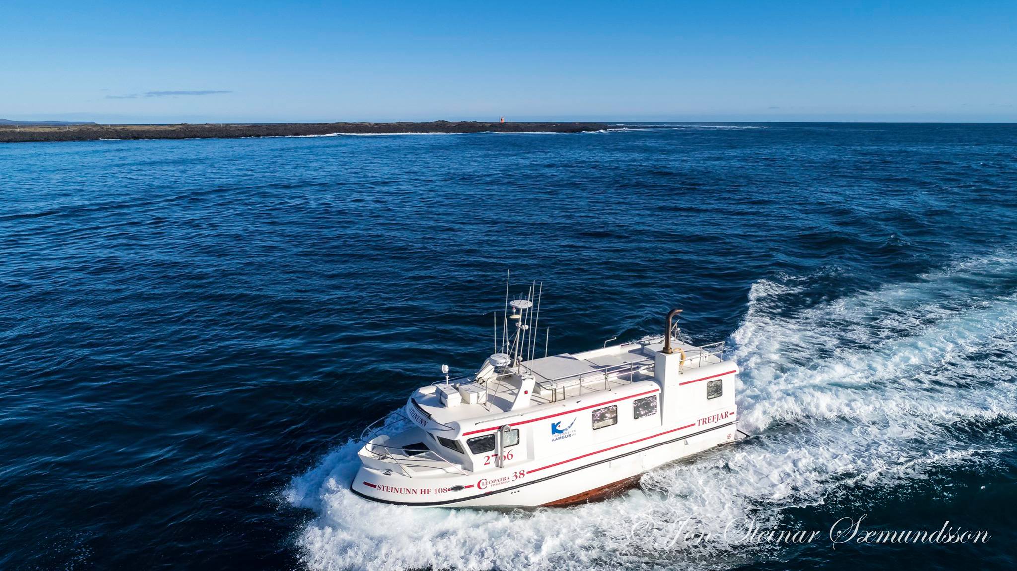 Línubáturinn Steinunn HF 108 kemur hér til hafnar í Grindavík fyrir helgi.