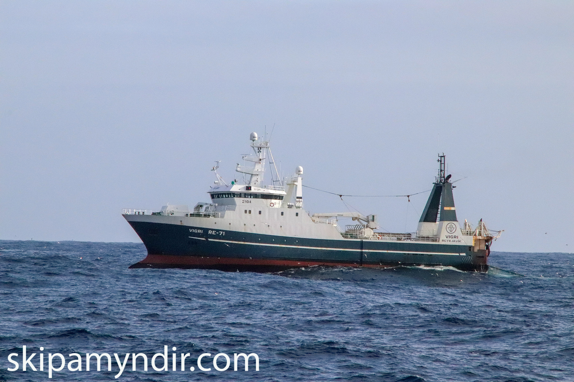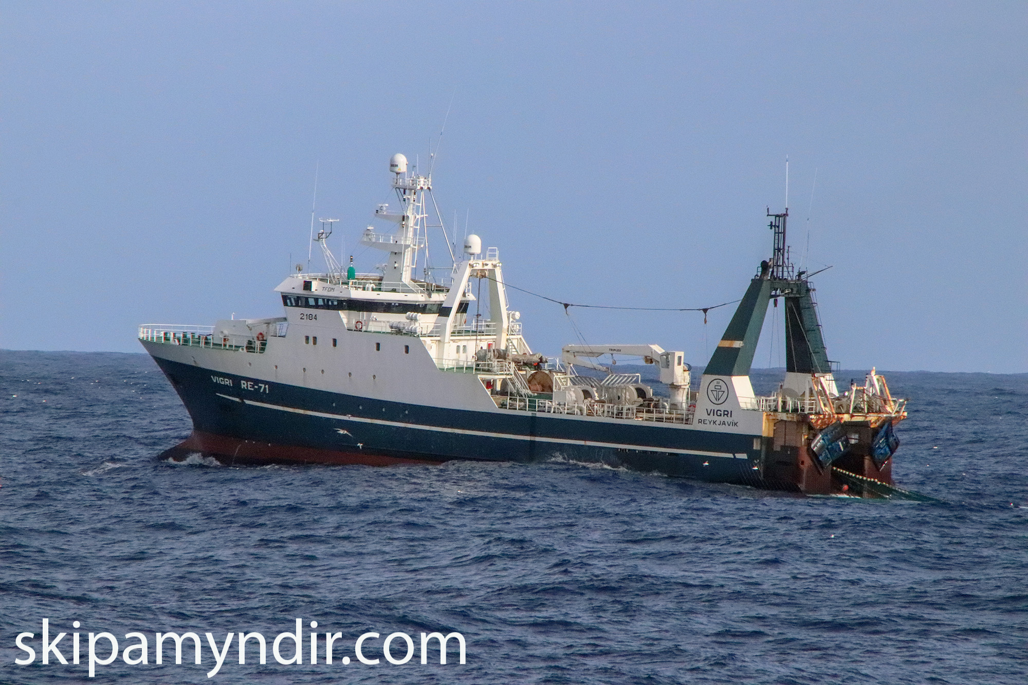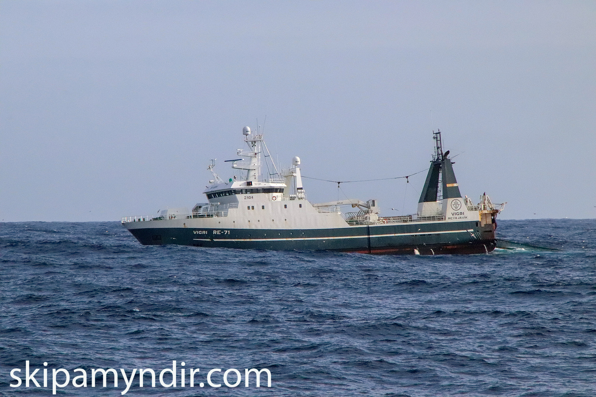 Hér birtist frystistogarinn Vigri RE 71 en myndirnar sýna hann að veiðum á Heimsmeistarahrygg í Skerjadýpi sl. fimmtudag.
