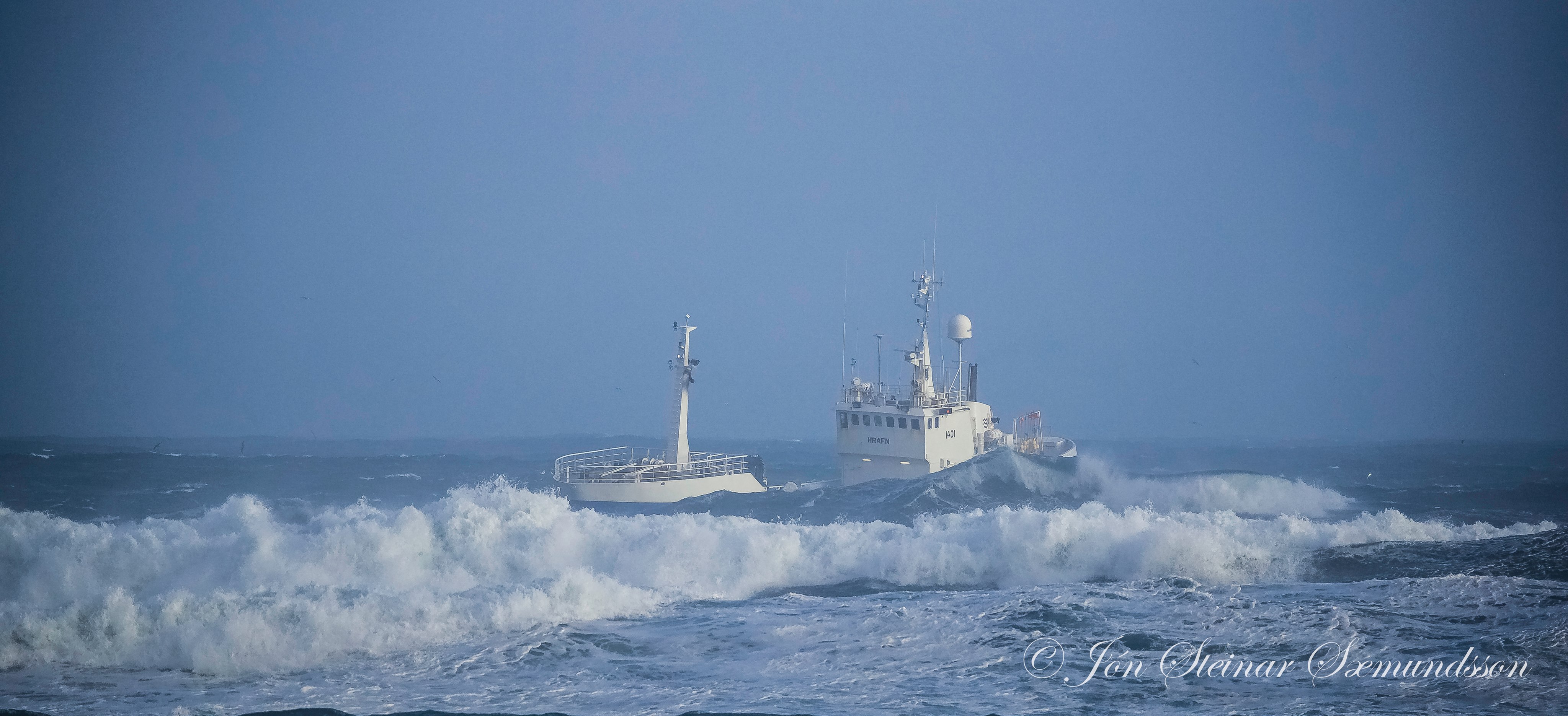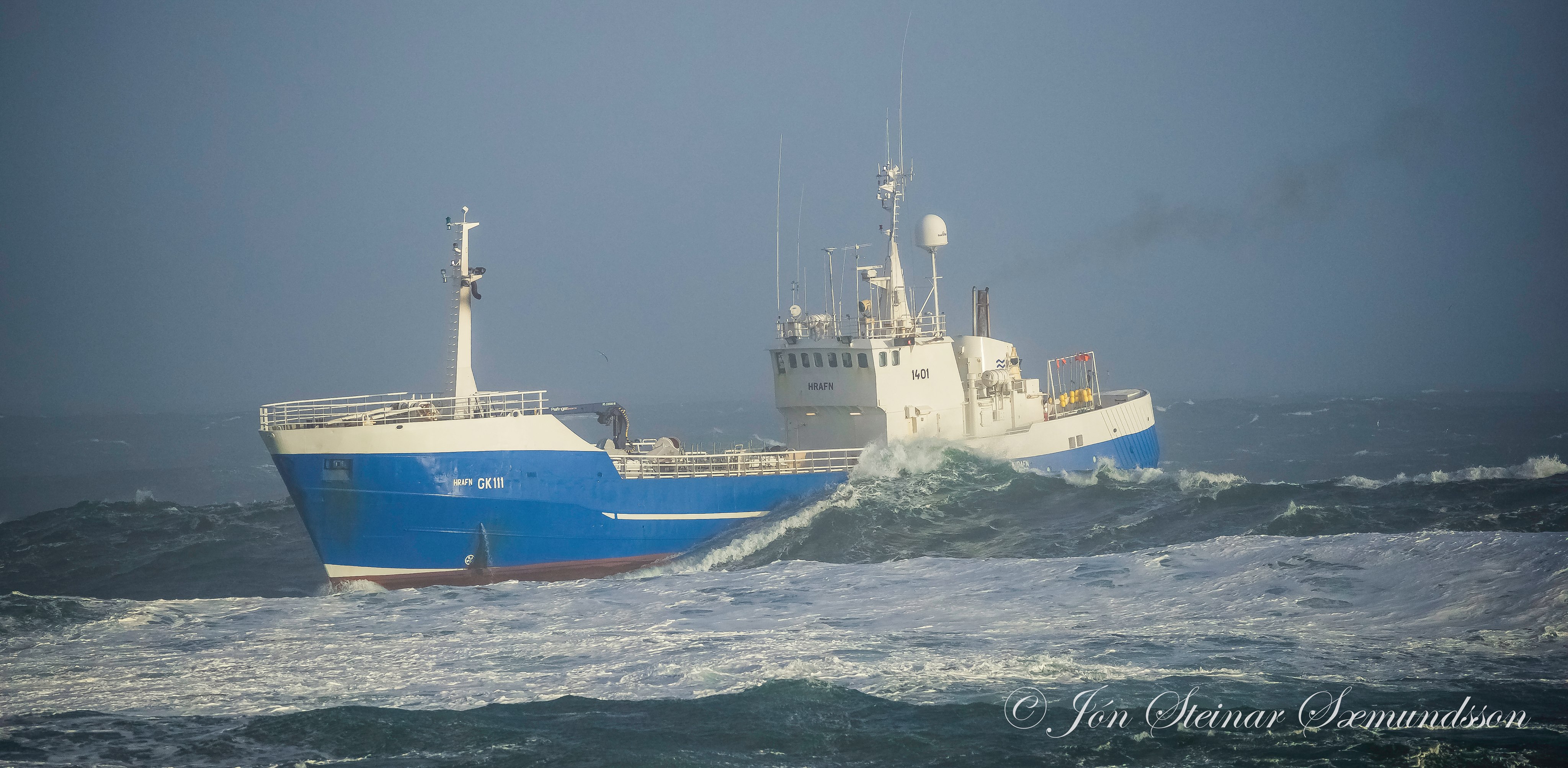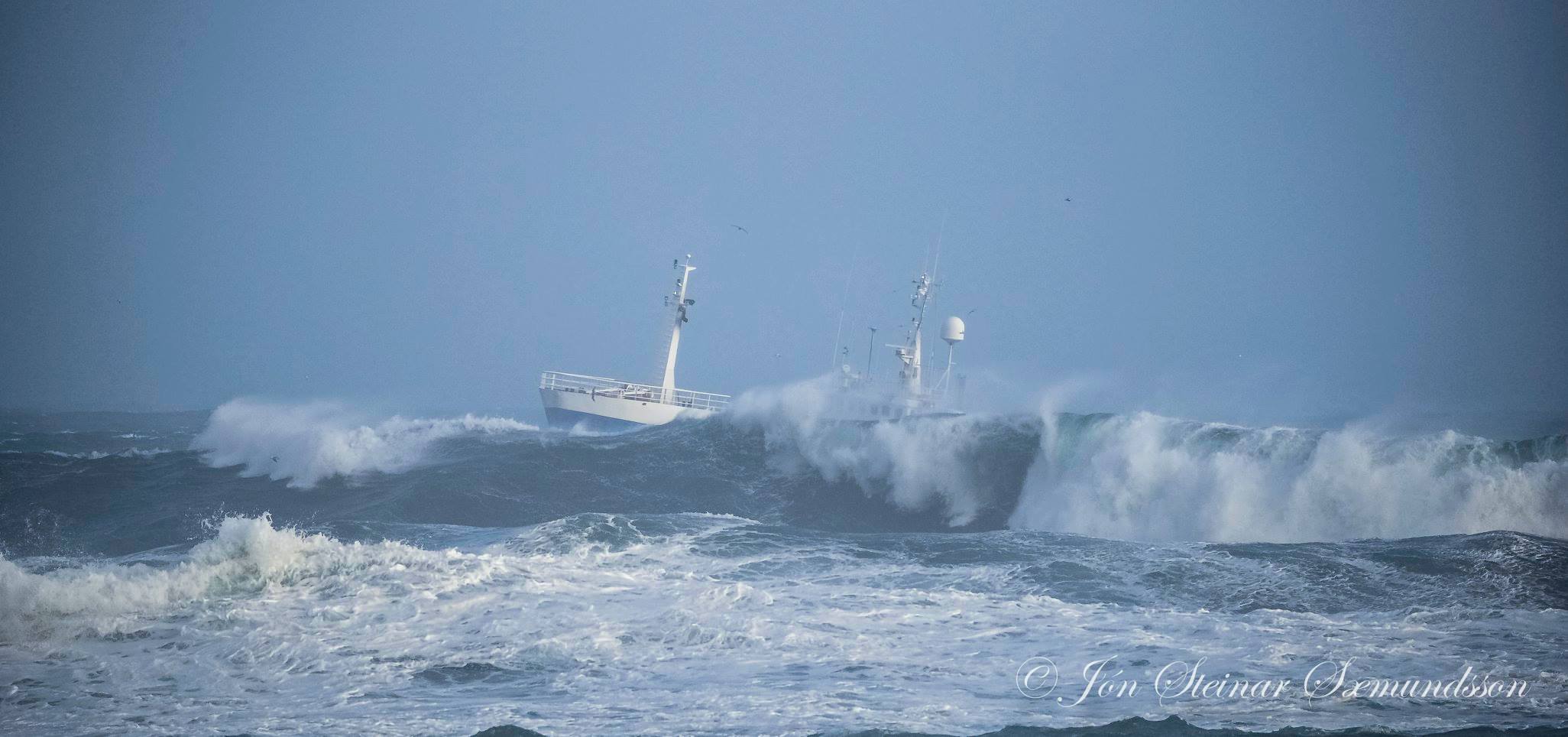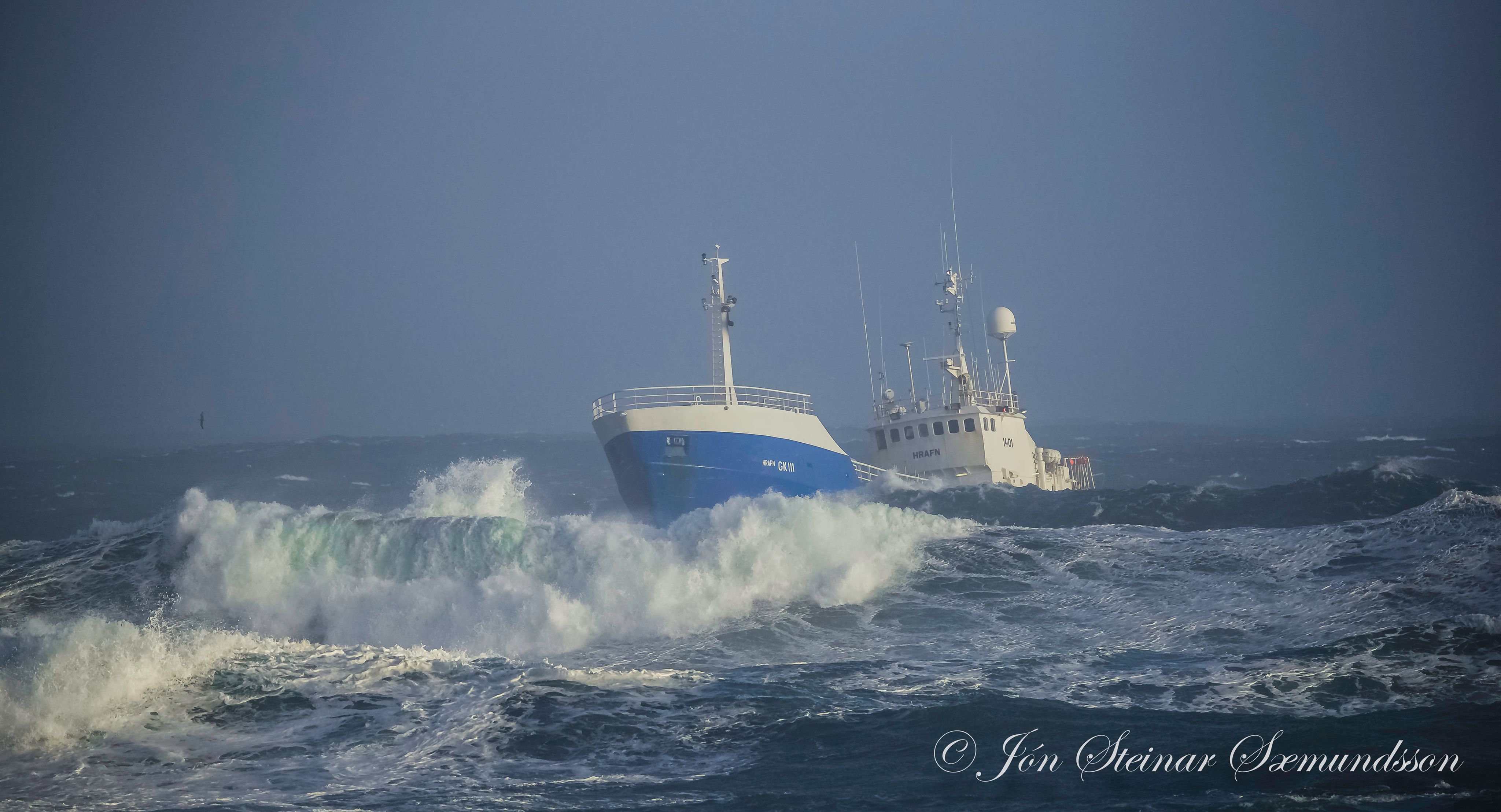 Hrafn GK 111 kom til hafnar í Grindavík um kvöldmatarleytið í gær en haugasjór var og ölduhæðin 6,2 metrar.