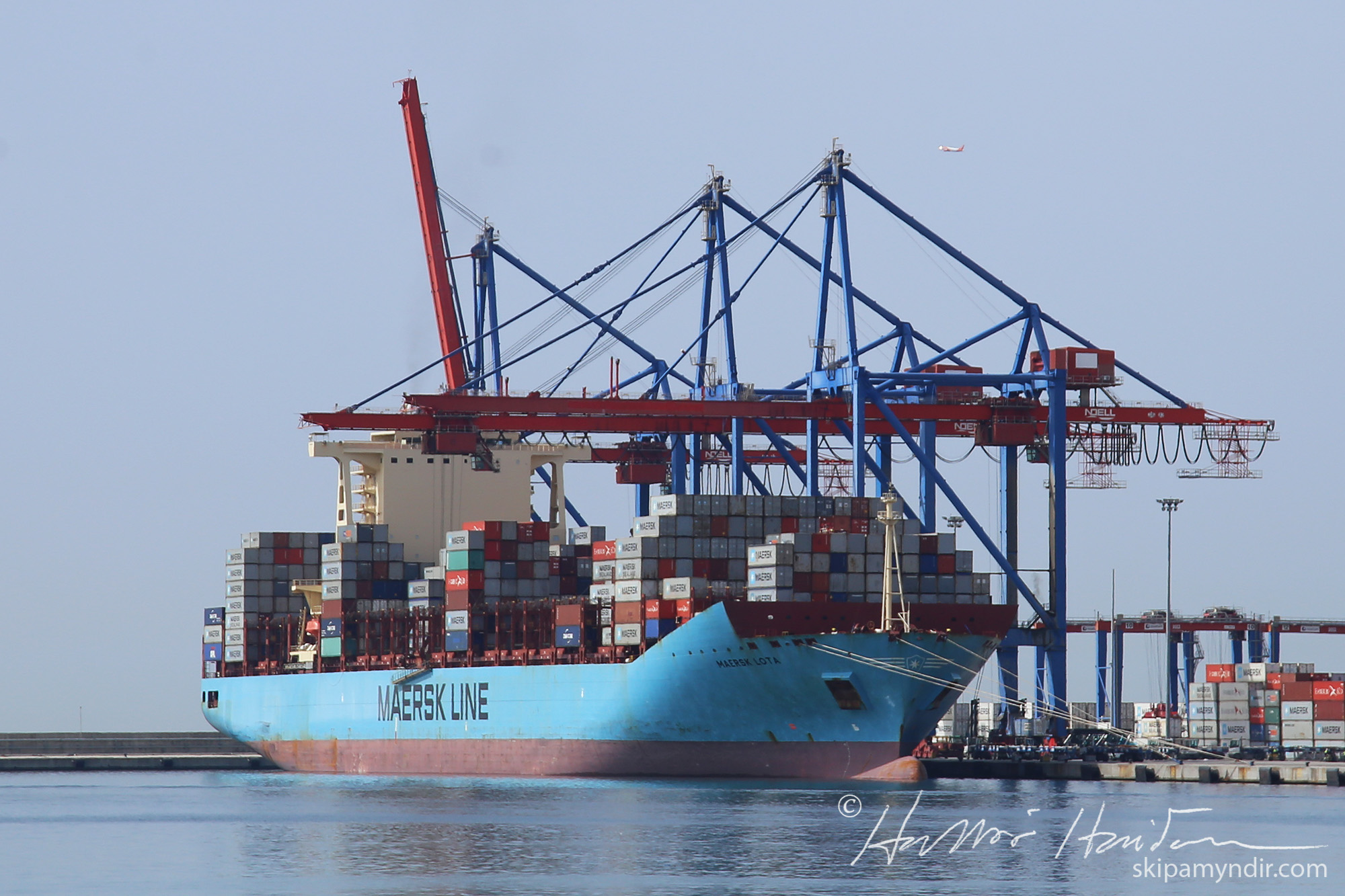 Flutningaskipið Maersk Lota var í höfní Malaga í upphafi vikunnar og þá var þessi mynd tekin.
