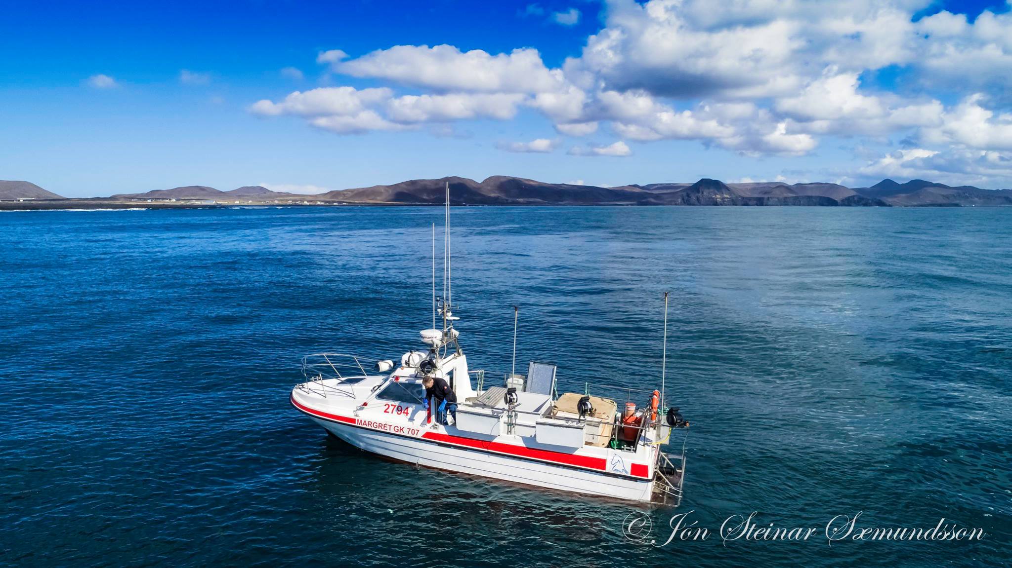 Handfærabáturinn Margrét GK 707 er að veiðum skammt utan við Grindavík á þessum myndum Jóns Steinars frá því um daginn.