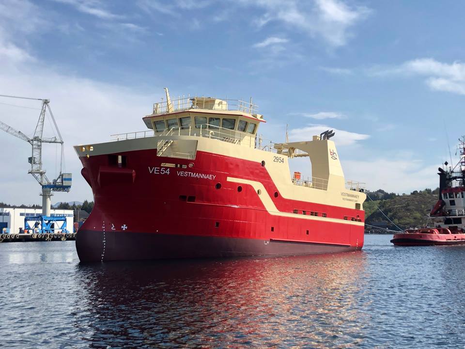 Hin nýja Vestmannaey sem er í smíðum hjá skipasmíðastöðinni Vard í Aukra í Noregi var sjósett í morgun.