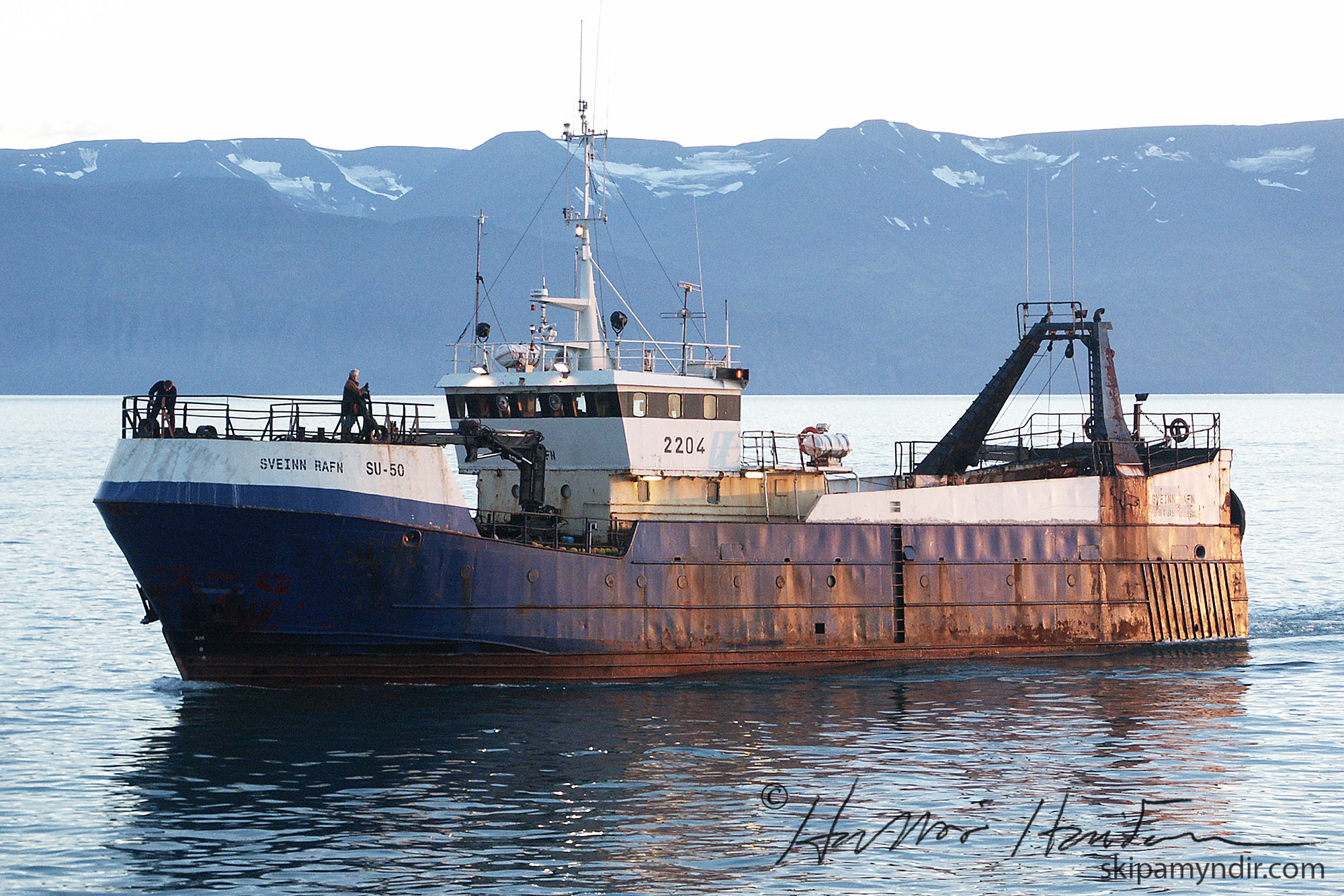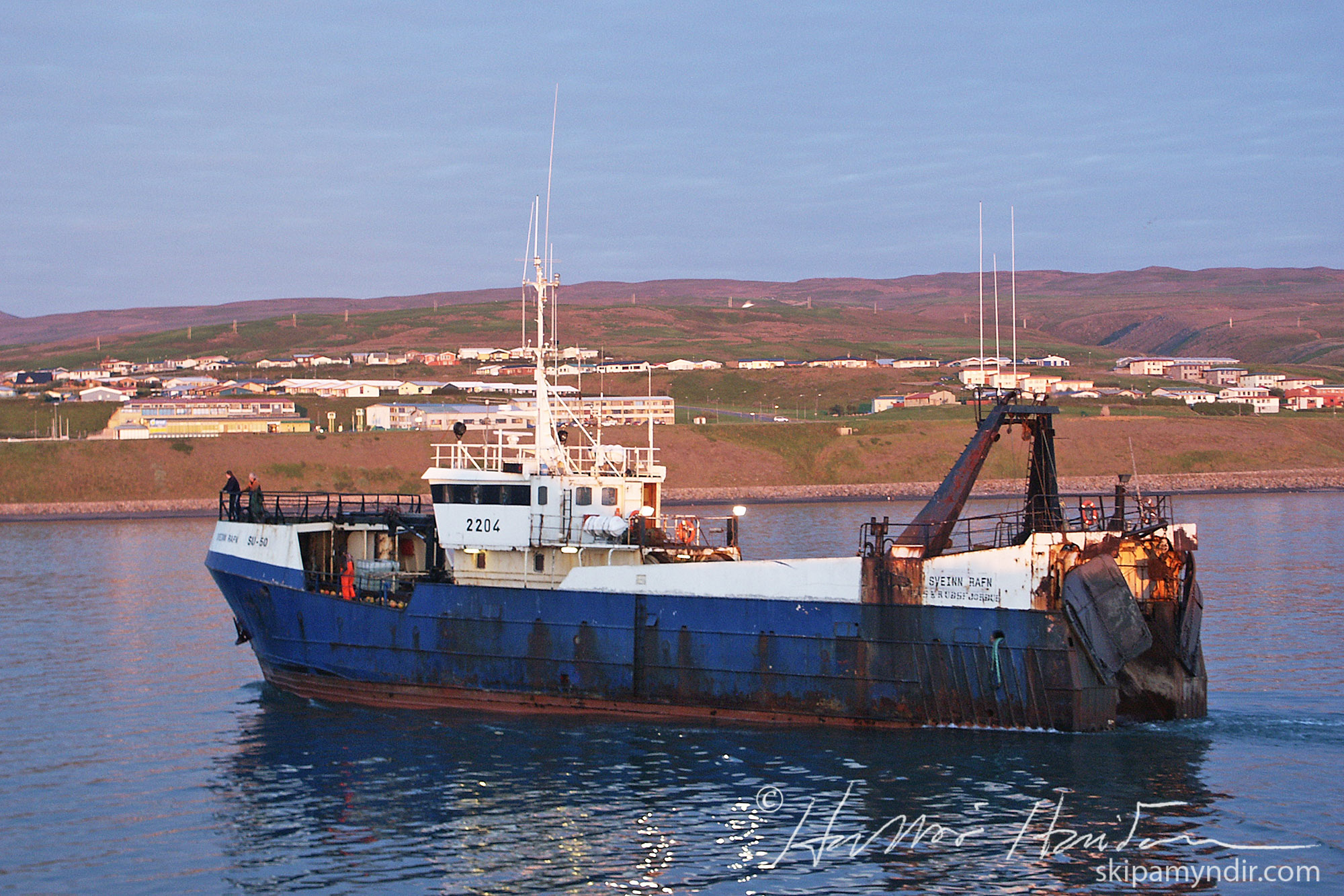 Rækjutogarinn Sveinn Rafn SU 50 kemur hér að landi á Húsavík á fögru ágústkveldi árið 2003.