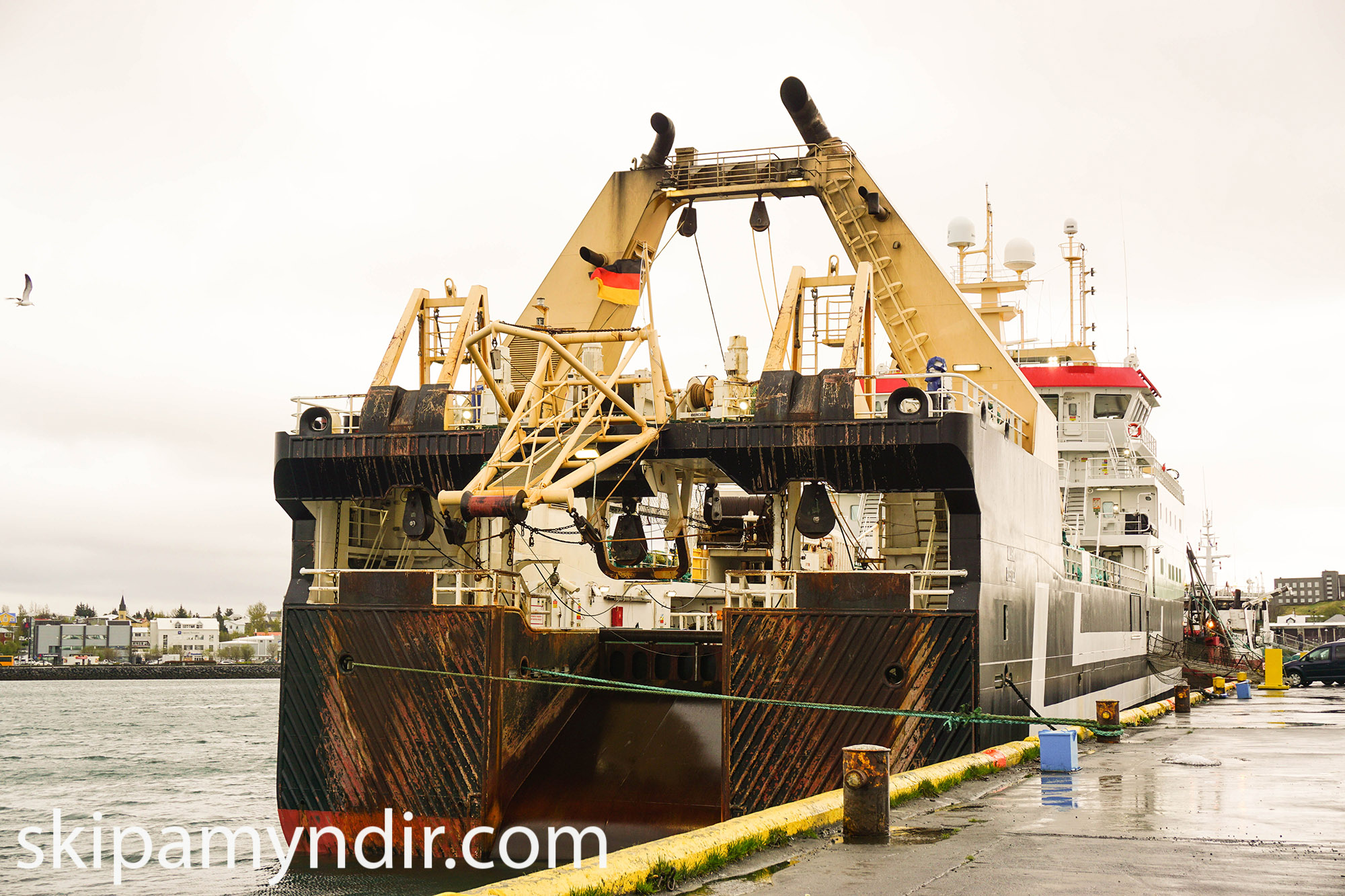 Þýski frystitogarinn Mark ROS 777 er í Hafnarfjarðarhöfn og tók Maggi Jóns þessar myndir af honum.