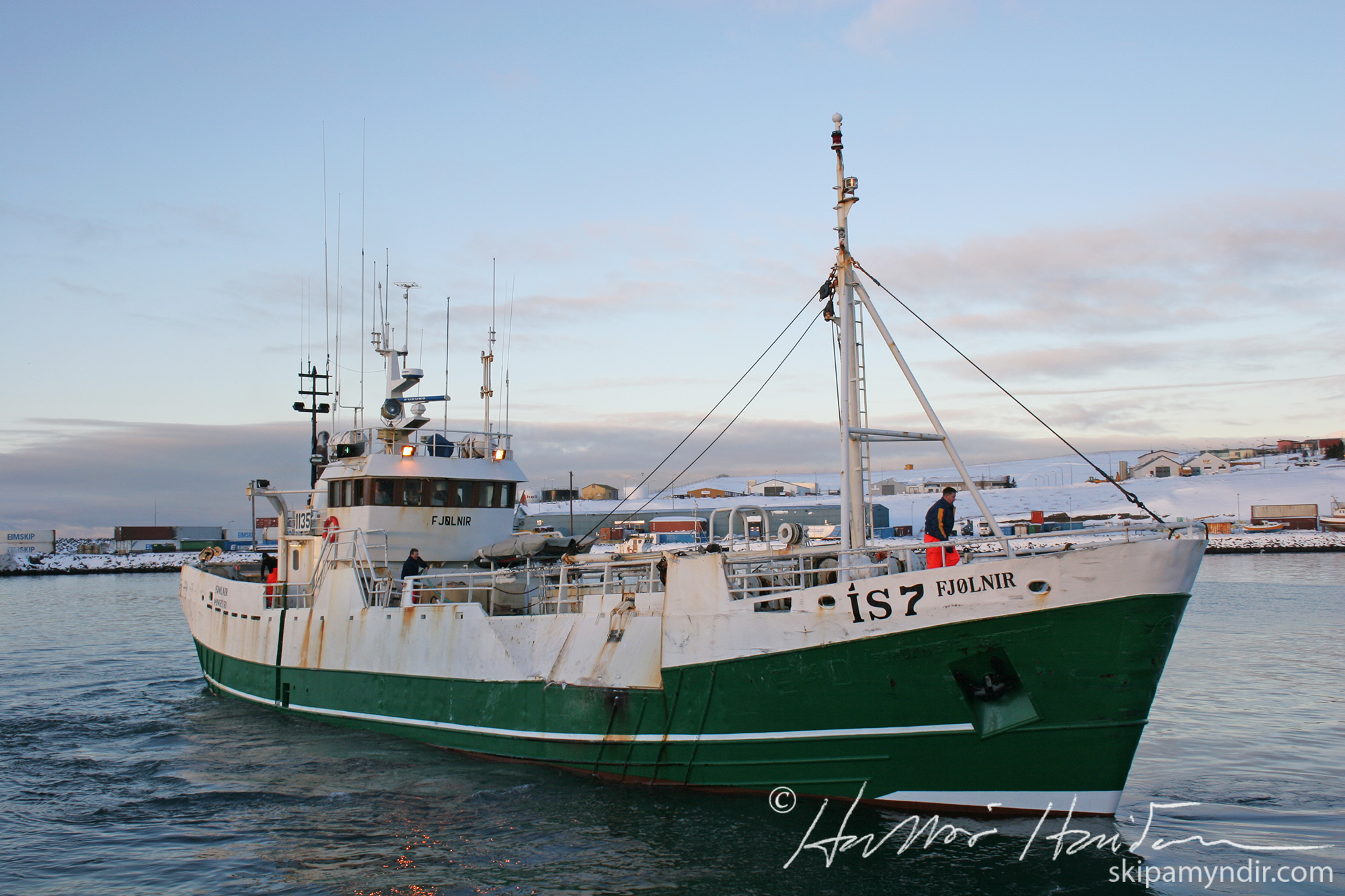Línubáturinn Fjölnir ÍS 7 fer hér frá bryggju á Húsavík eftir löndun í nóvembermánði árið 2004.
