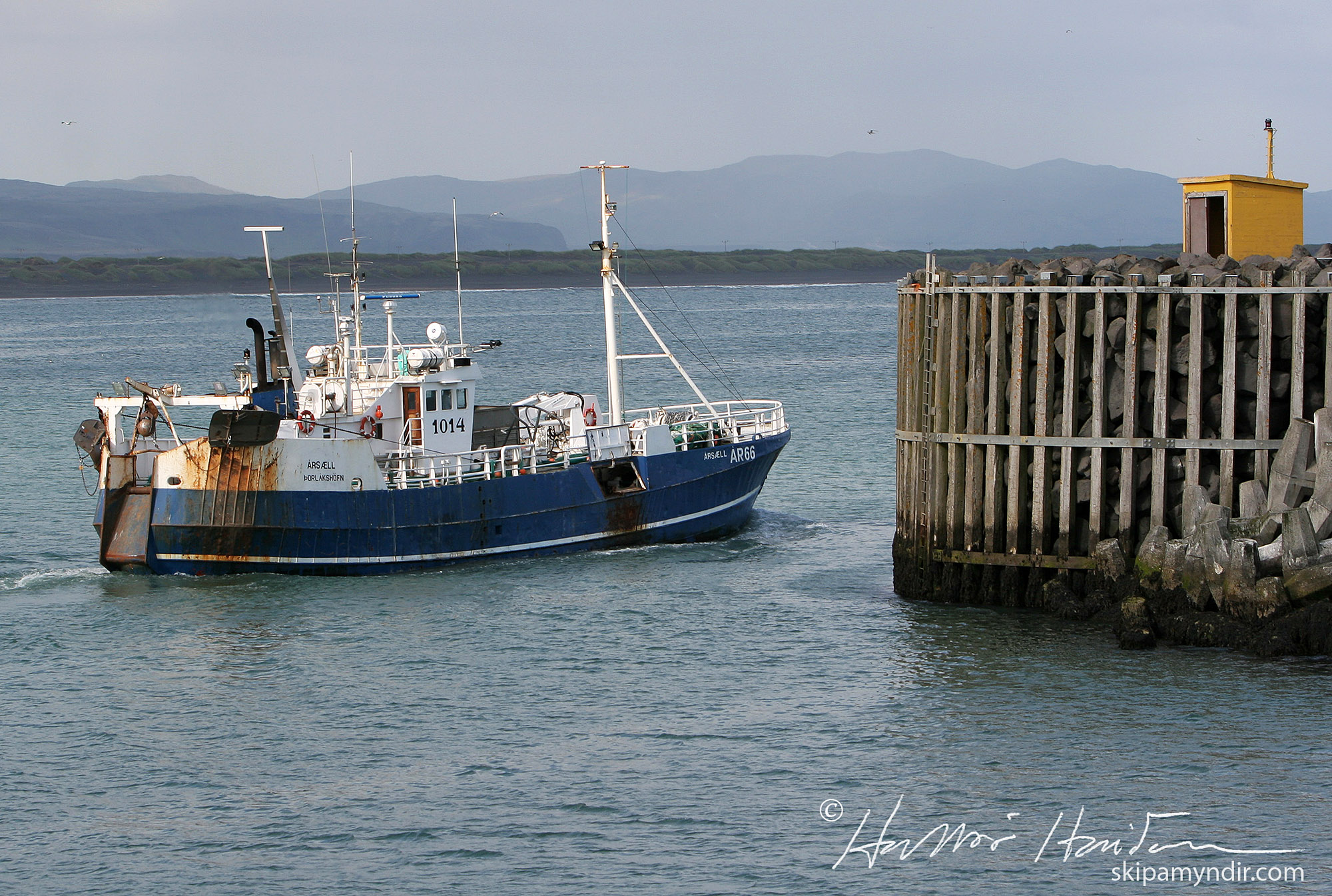 Humarbáturinn Ársæll ÁR 66 lætur hér úr höfn í Þorlákshöfna sumarið 2009 en þá var hann í eigu Atlantshumars ehf.