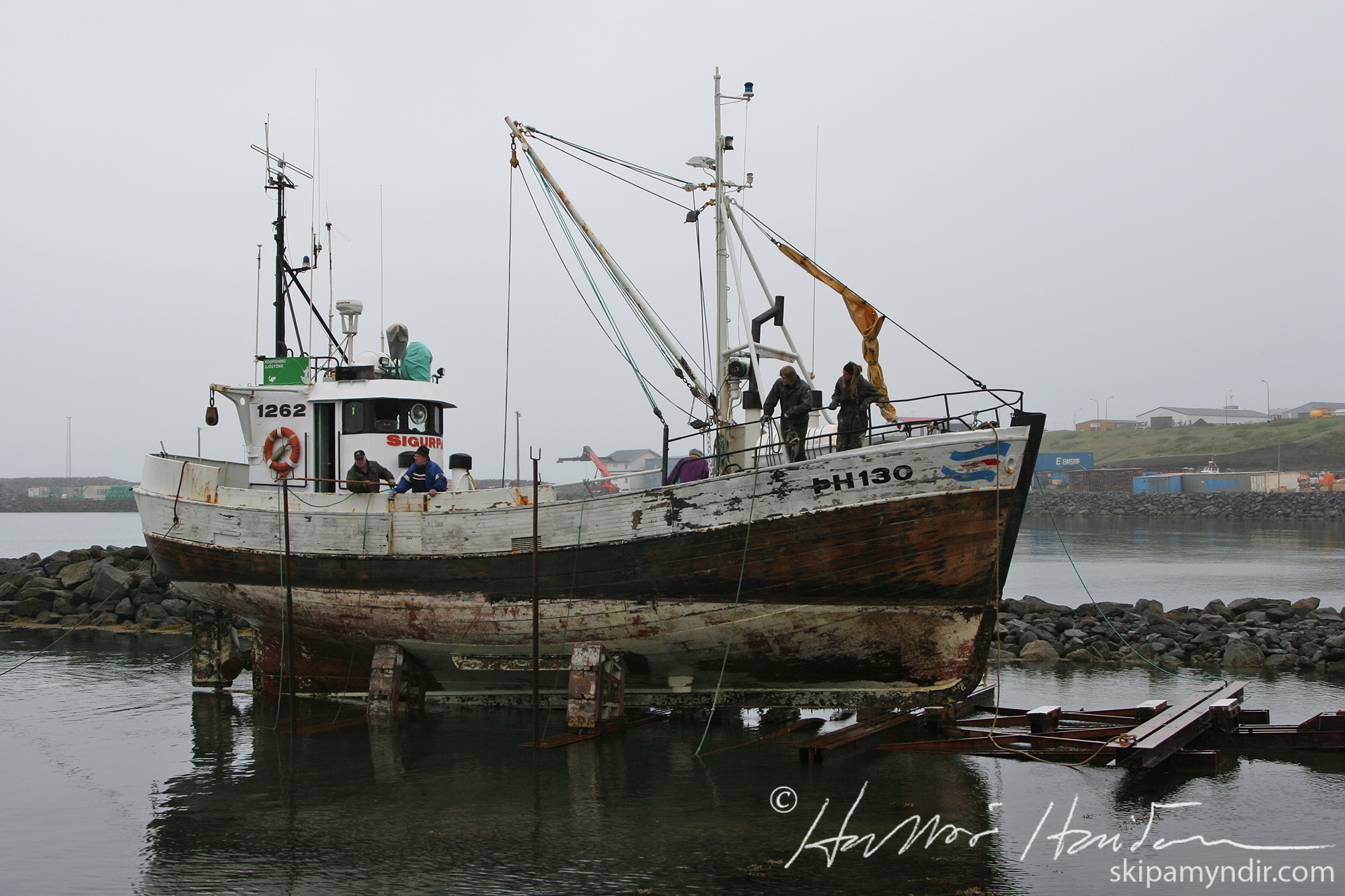 Sigurpáll ÞH 130 í sleðanum á leið upp í slippinn á Húsavík 9 . júní árið 2008.