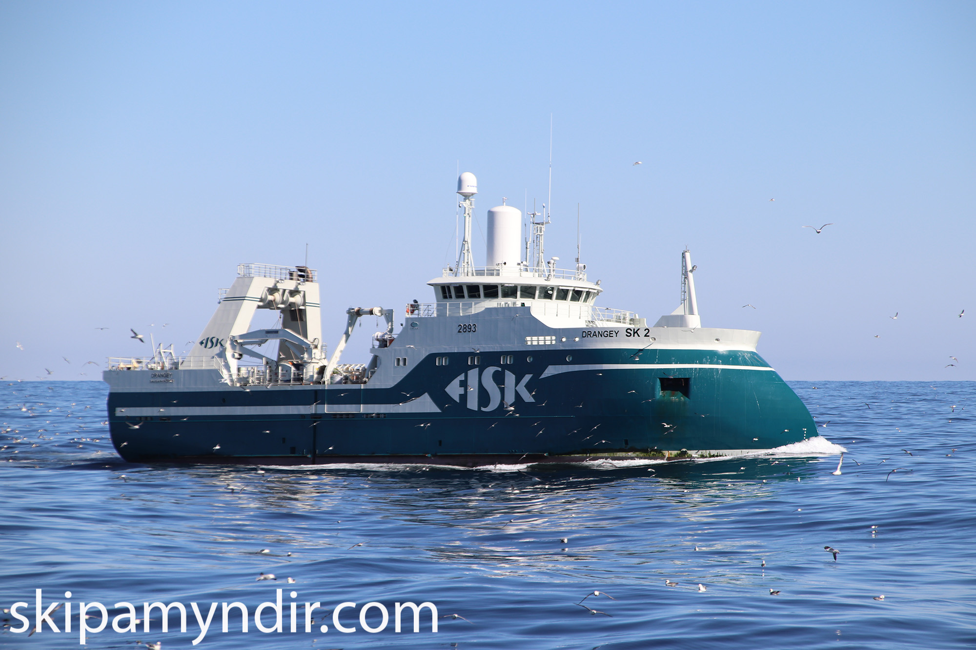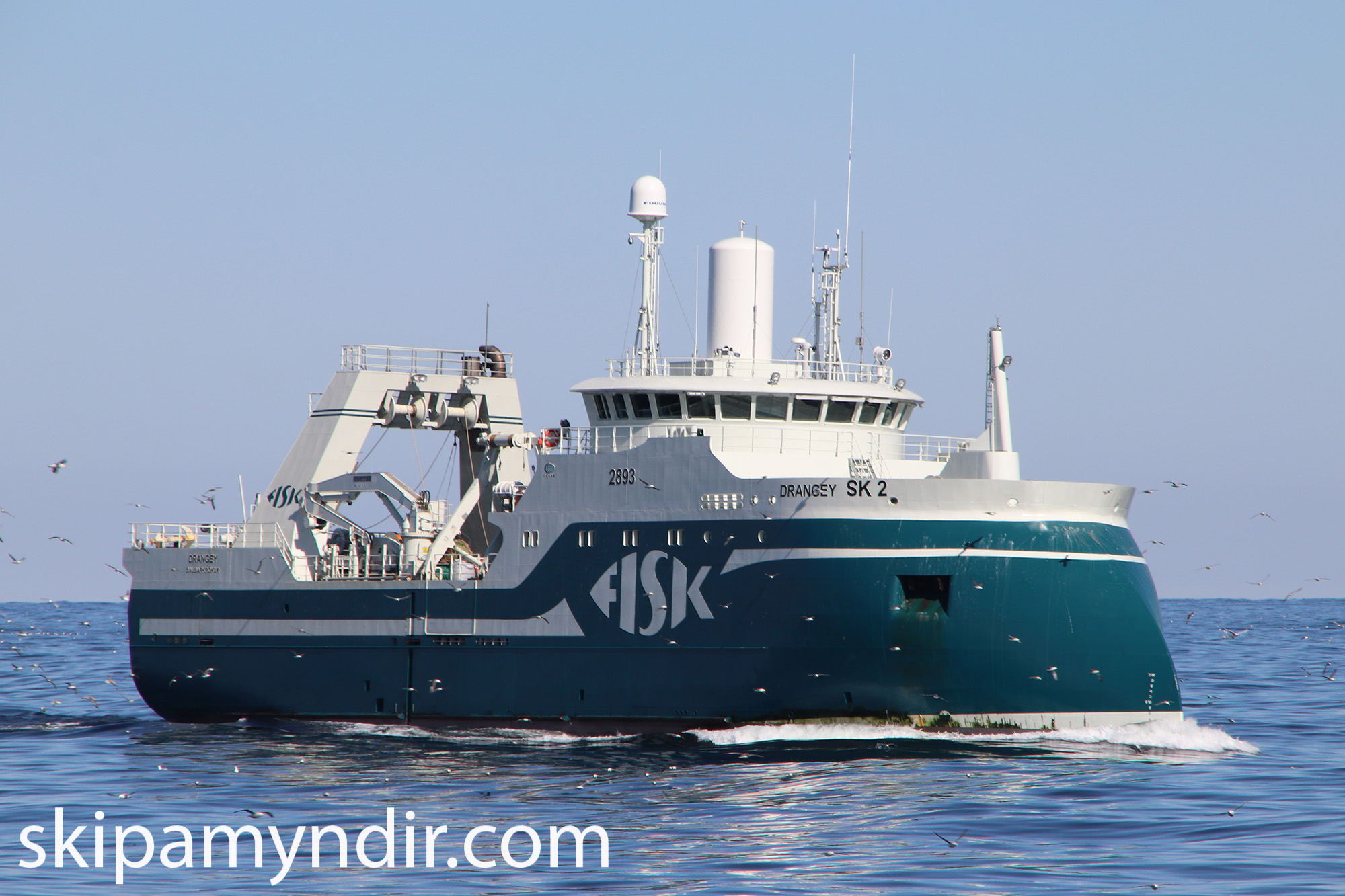 Það var dandalablíða á miðunum fyrir vestan land í síðustu viku þegar Hólmgeir Austfjörð tók þessar myndir af Drangey SK 2 frá Sauðárkróki.