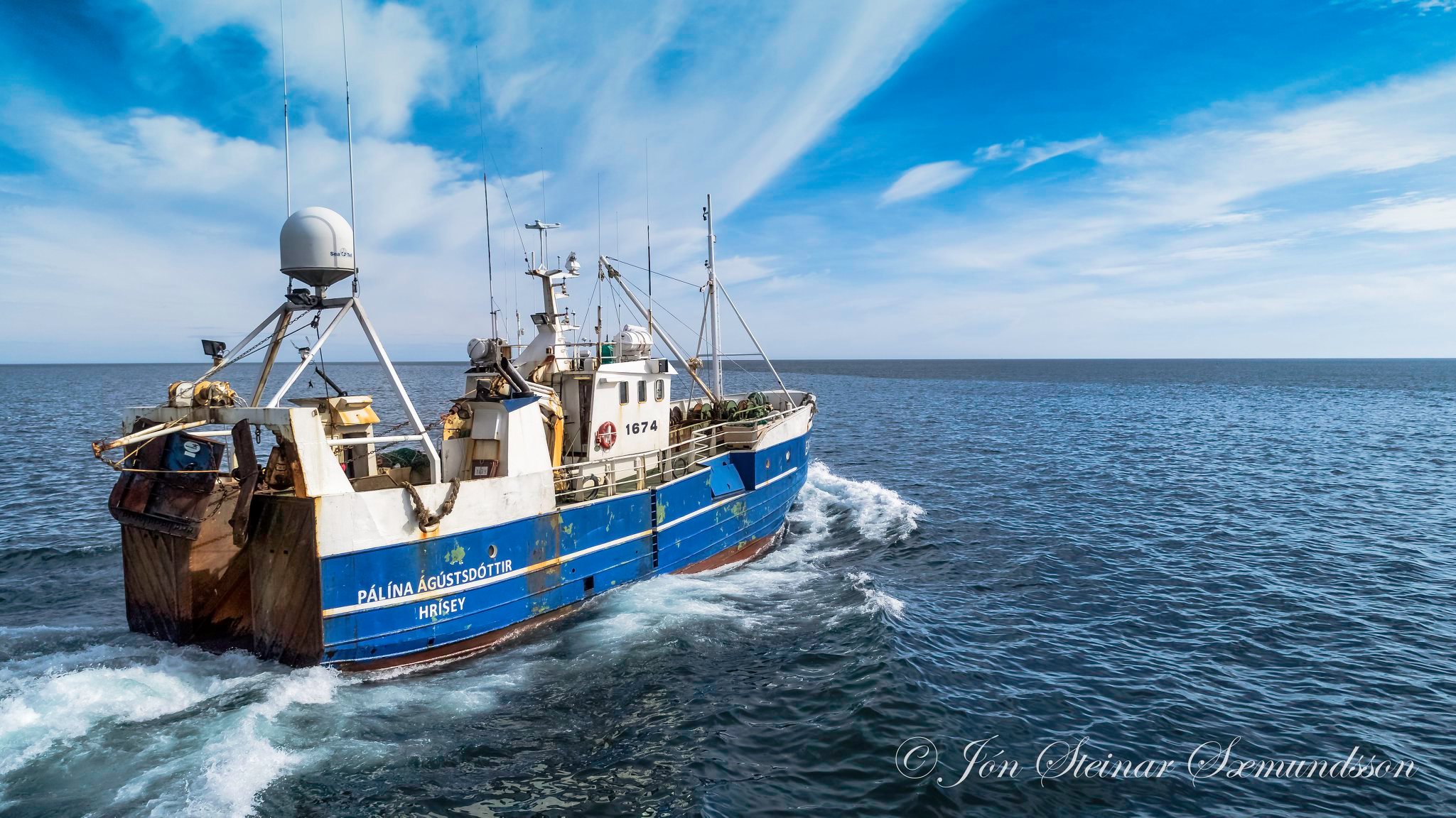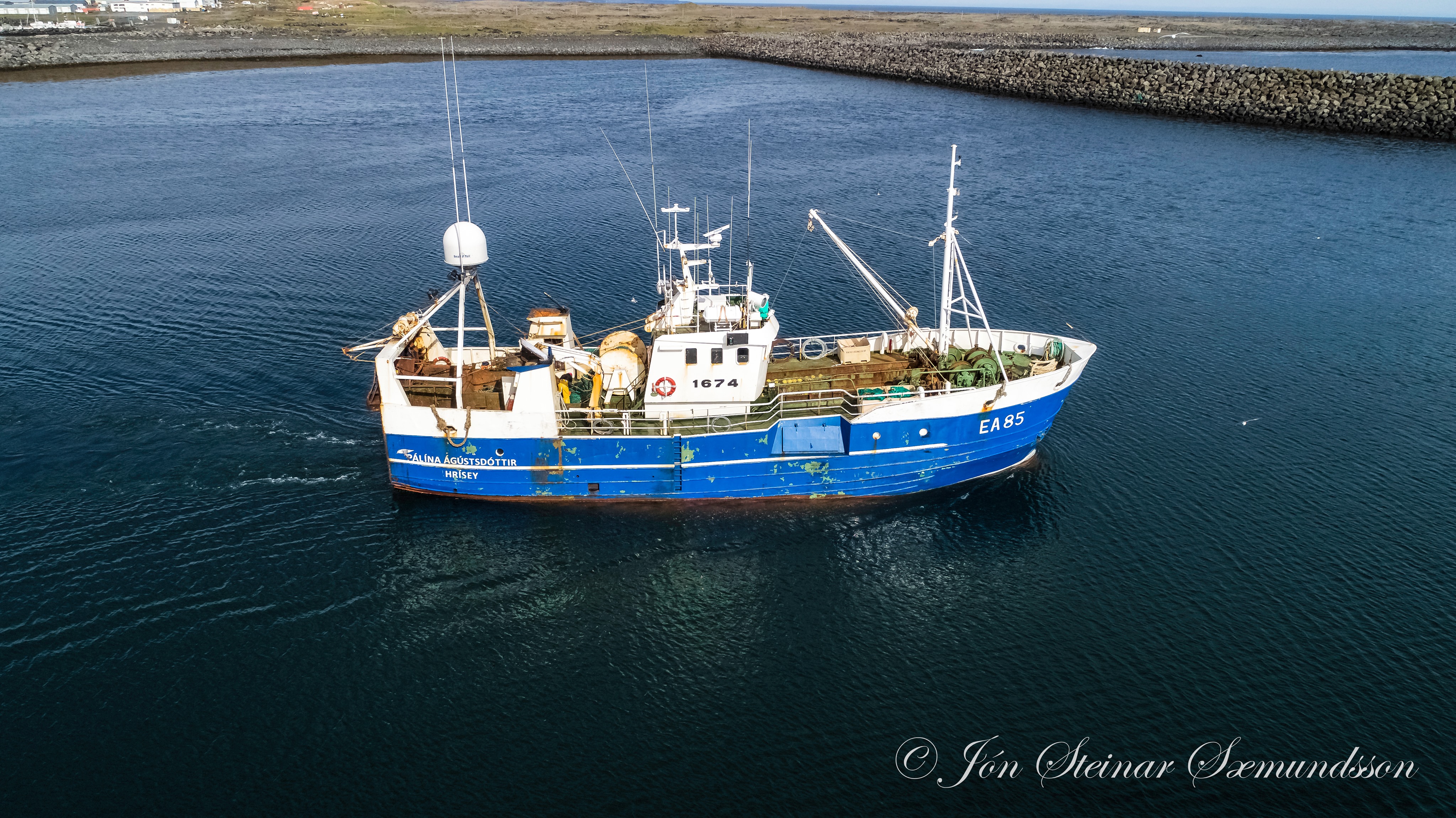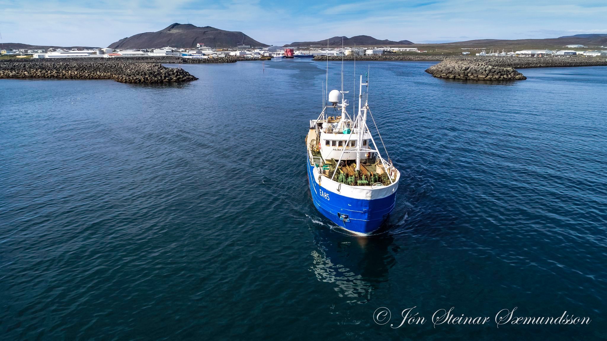 Pálína Ágústsdóttir EA 85 lét úr höfn í Grindavík í gær og Jón Steinar sendi drónann á loft.