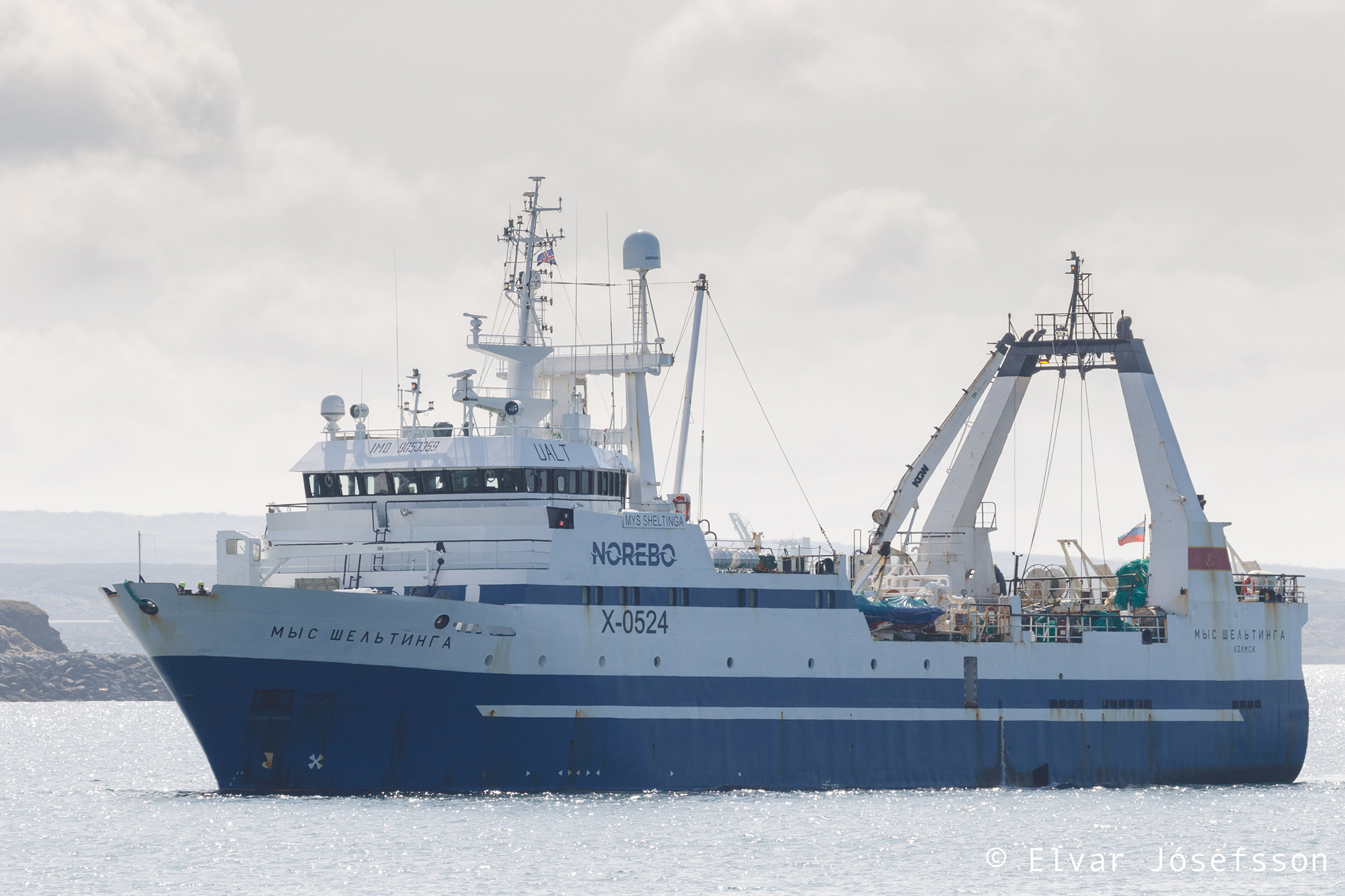 Elvar Jósefsson tók þessa mynd í gær af frystitogaranum Mys Sheltinga X-0524 sem hefur verið að veiðum á Reykjaneshrygg undanfarið.
