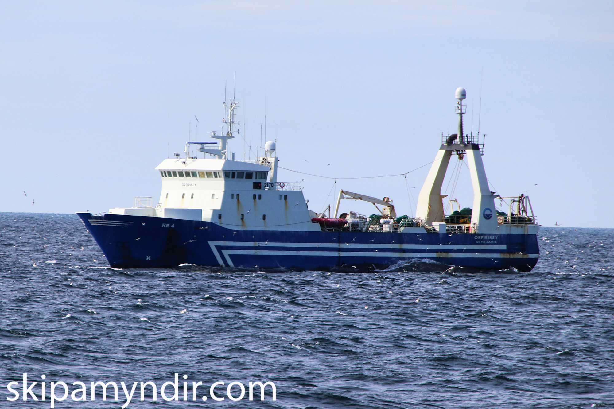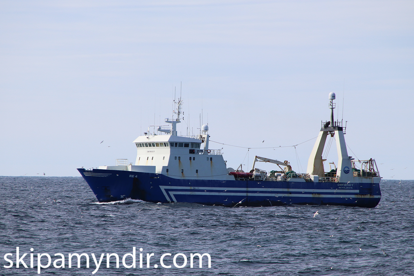 Frystitogarinn Örfirsey RE 4 er hér á toginu á Halanum í dag en myndirnar tók Hólmgeir Austfjörð skipverji á Ottó N Þorlákssyni VE 5.