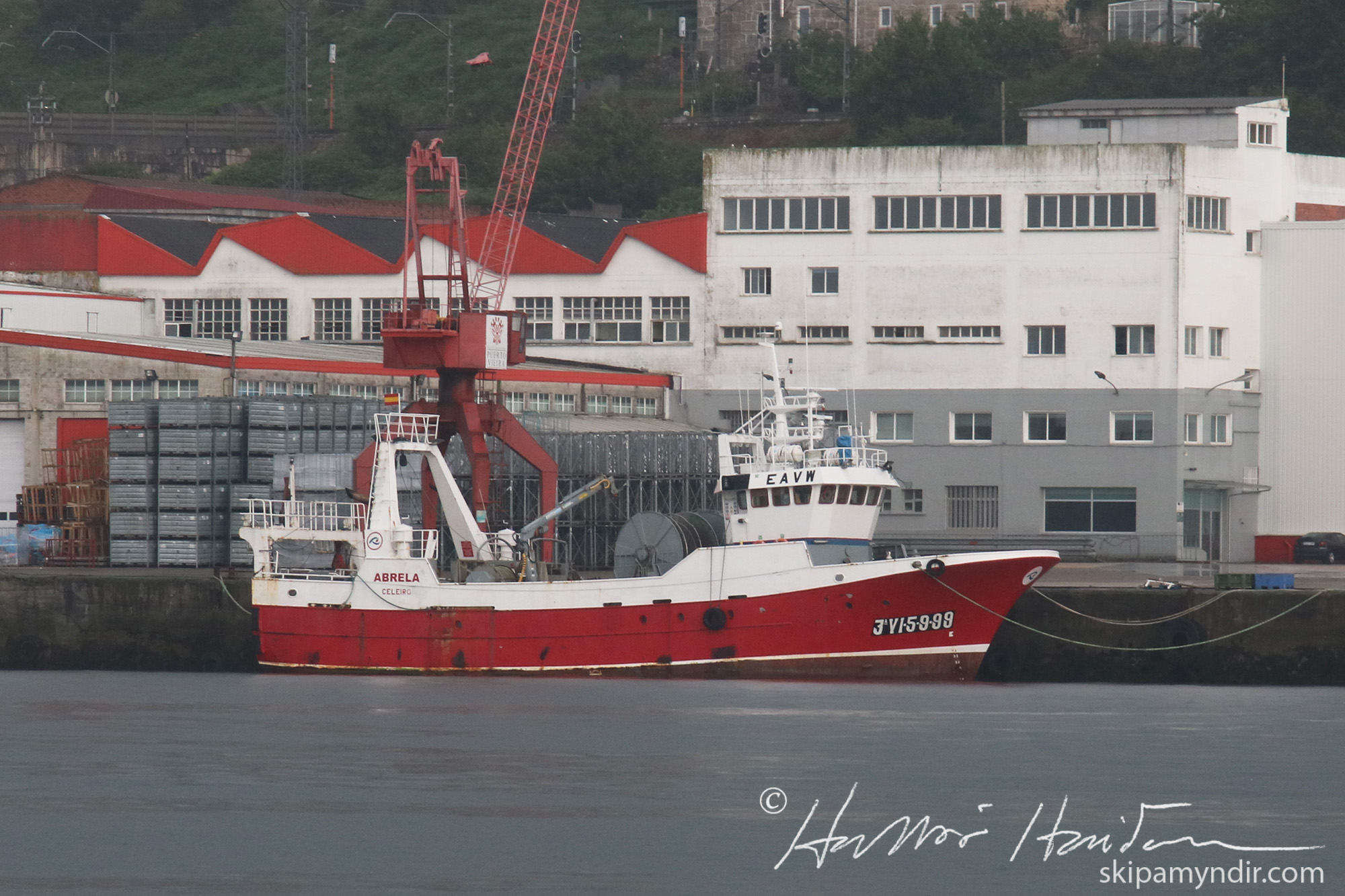 Hér liggur spænski togbáturinn Abrela við bryggju innarlega í Vigoflóanum. Myndin var tekin í gær.