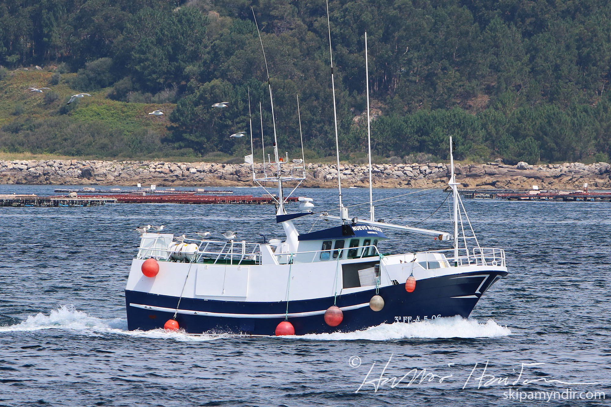 Fiskibáturinn Nuevo Maresco siglir hér inn eftir Vigoflóanum norðanverðum á leið í gær til hafnar í Vigo.
