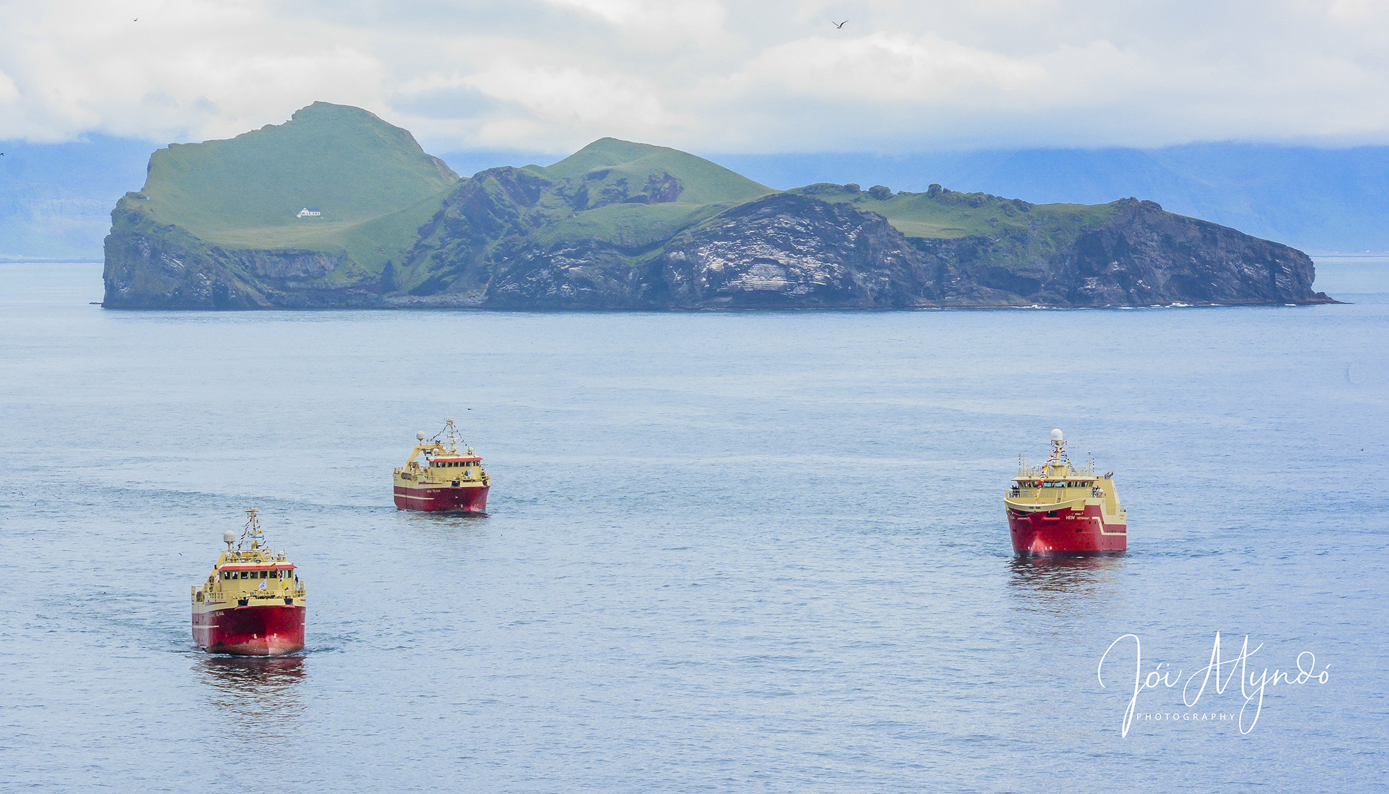 Ný Vestmanney VE 54 kom til hafnar í Vestmannaeyjum í dag í fylgd Bergeyjar VE 544 og Vestmannaeyjar VE 444.