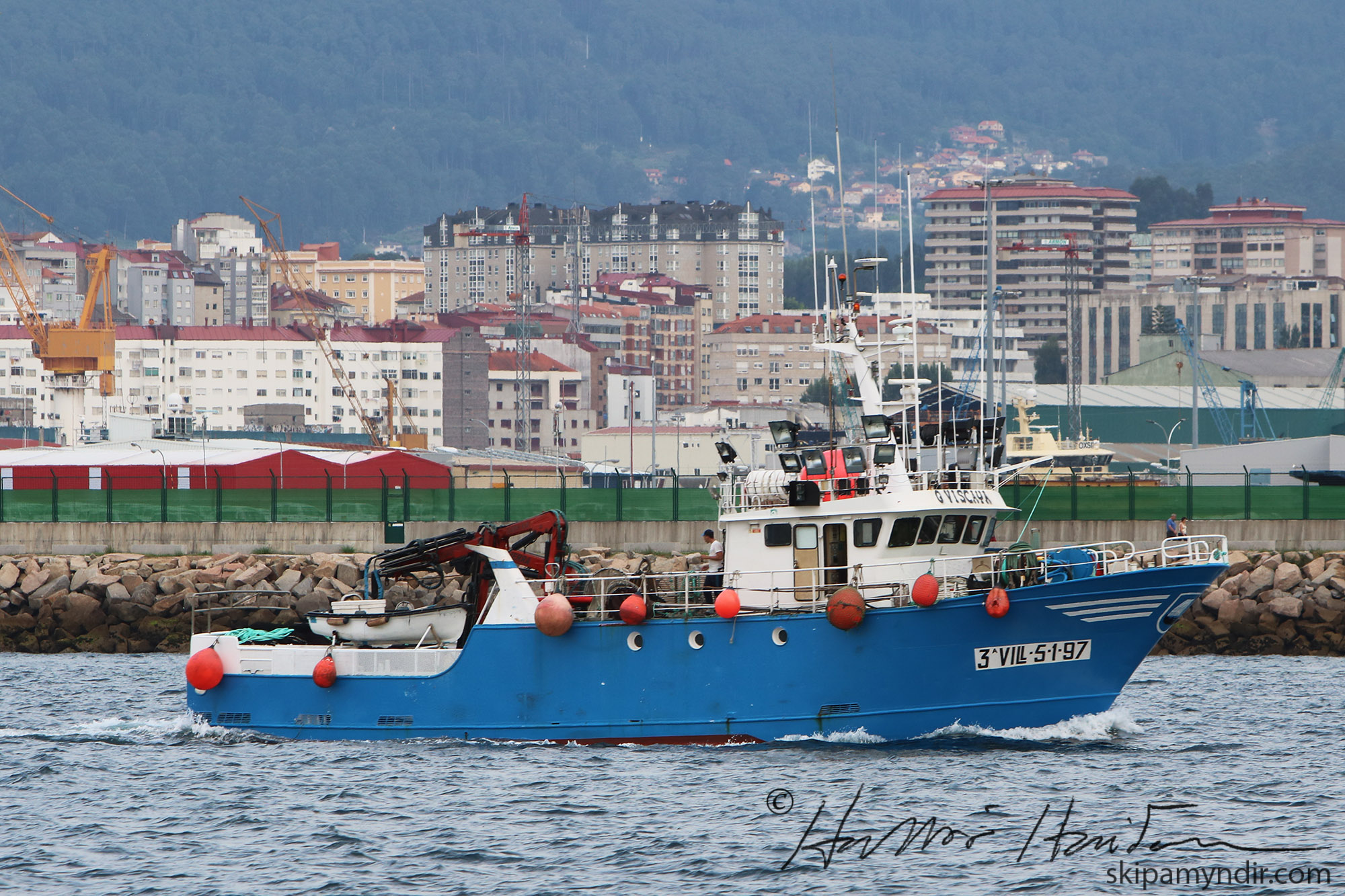 Við mættum þessum fiskibáti á dögunum þar sem hann var á útleið frá Vigo.