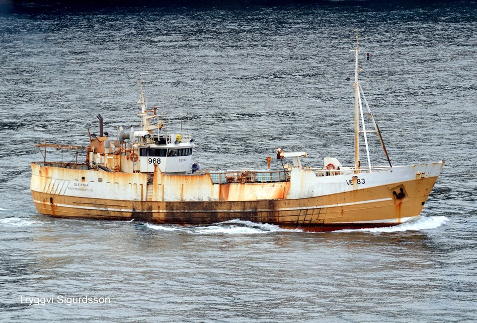 Sleipnir VE 83 lét úr höfn í Vestmannaeyjum undir kvöld í dag áleiðis til Belgíu þar sem báturinn fer í brotajárn.