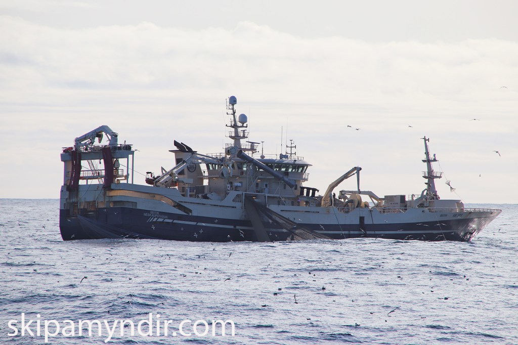 Beitir NK 123, skip Síldarvinnslunnar í Neskaupsstað, er hér að síldveiðum í dag, nánar tiltekið á Glettingarnesgrunni.