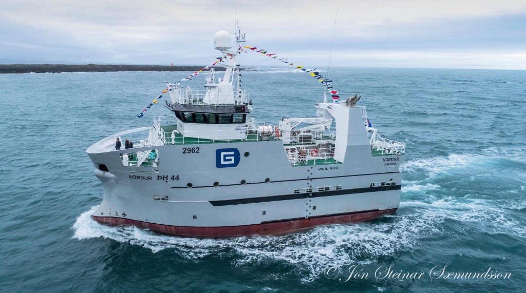 Vörður er annað skipið sem kemur til landsins í röð sjö raðsmíðaskipa sem íslensk útgerðarfyrirtæki sömdu um smíði á við Vard skipasmíðastöðina.