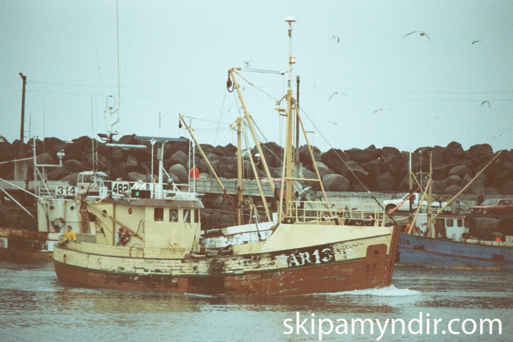 Bjarnarvík ÁR 13 kemur hér til hafnar í Þorlákshöfn á vetrarvertíðinni 1982 en myndina tók Hreiðar Olgeirsson skipstjóri á Kristbjörgu ÞH 44 frá Húsavík.