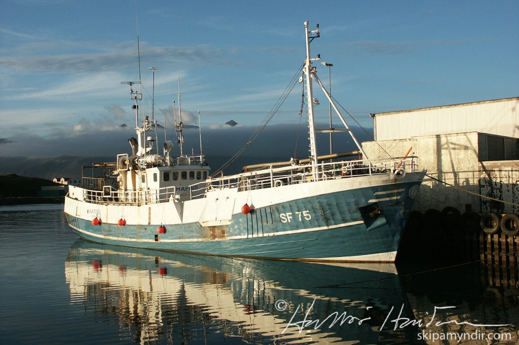 Hafdís SF 75 liggur hér við bryggju á Hornafirði sumarið 2004 en báturinn var keyptur þangað vorið 1991.