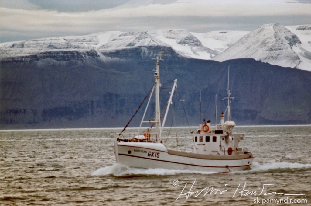 Eikarbáturinn Þorsteinn GK 15, sem gerður var lengi út frá Raufarhöfn, kemur hér að landi á Húsavík um árið.