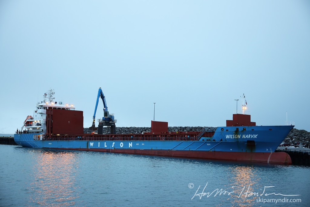 Flutningaskipið Wilson Narvik lagðist að Bökugarðinum á Húsavík snemma að morgni Bóndadags en skipið er með hráefnisfarm til PCC á Bakka.