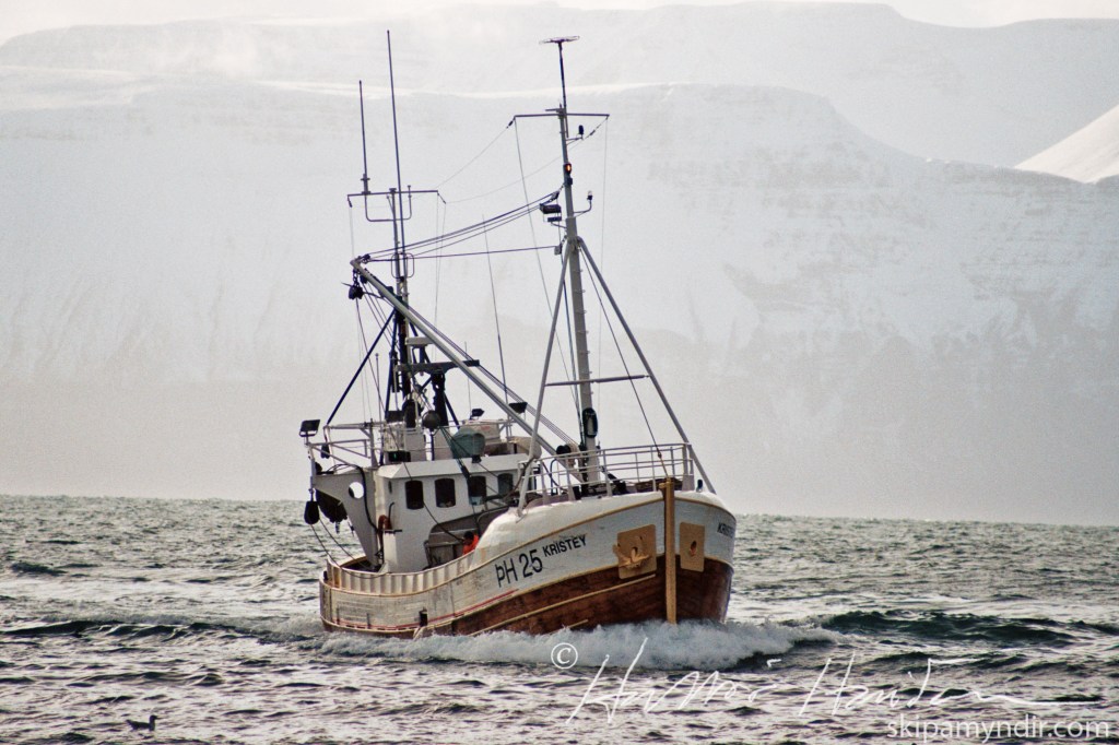 Kristey ÞH 25 kemur hér til hafnar á Húsavík um árið en hún hefur verið á dragnótaveiðum þegar myndirnar voru teknar.