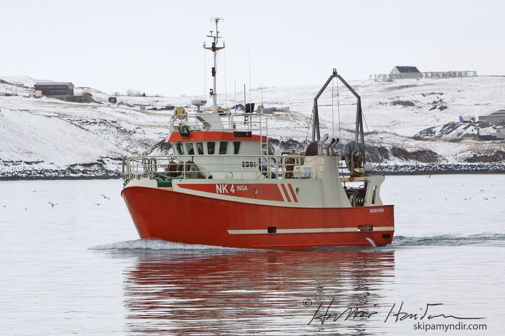 Inga NK 4 frá Norðfirði kom til Húsavíkur í marsmánuði árið 2011 en báturinn var að kanna sæbjúgnamið við Norðurland.
