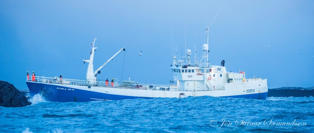Jón Steinar tók þessar myndir af línuskipinu Sturlu Gk 12 koma til hafnar í Grindavík á dögunum.