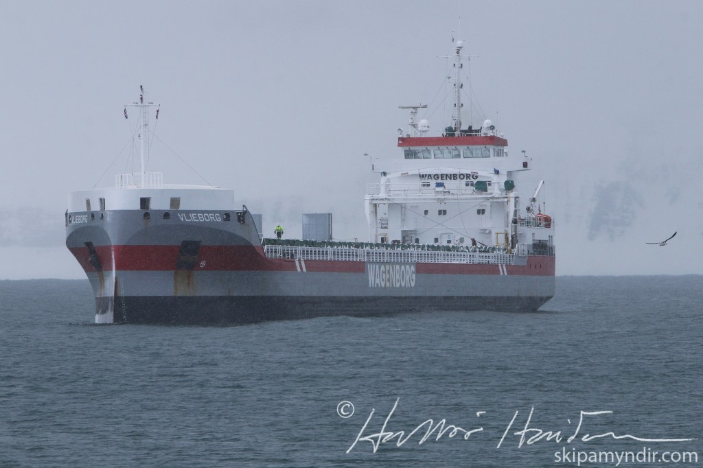 Hollenska flutningaskipið Vlieborg kom að Bökugarðinum í dag en skipið hefur legið fyrir festum á Skjálfanda undanfarna sólahringa.