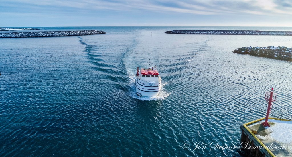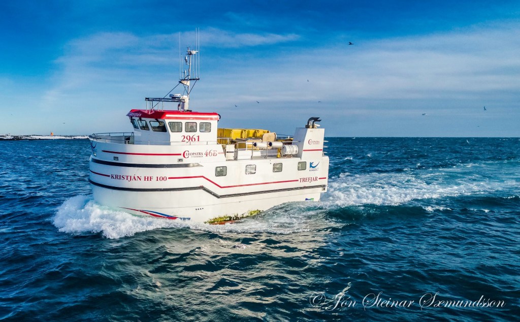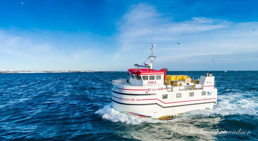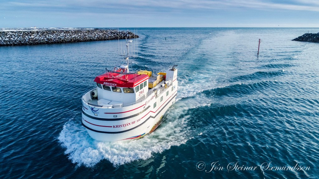 Línubáturinn Kristján HF 100, sem á þessum myndum sést koma inn til Grindavíkur, var smíðaður hjá Trefjum í Hafnarfirði árið 2018.