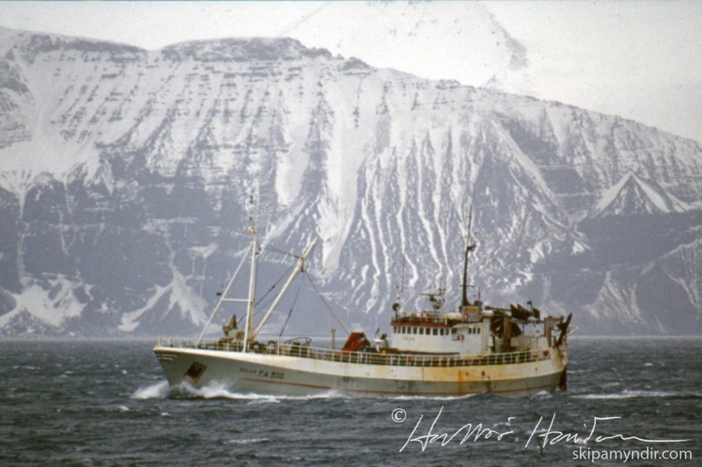 Hér er Súlan EA 300 á leið inn Skjálfandann um árið en hún lagði upp hjá Fiskiðjusamlagi Húsavíkur. Var að mig minnir á fiskitrolli en sennilega á rækju yfir sumarið.