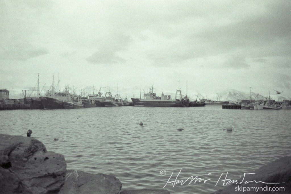Þetta eru myndir sem ég tel að teknar hafi verið vorið 1992 og greinilega bræla úti fyrir. Nokkuð um aðkomubáta að sjá. Súlan EA 300 og ÖrnKE 13 lögðu þó upp á Húsavík á þessum tíma.