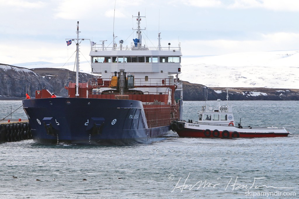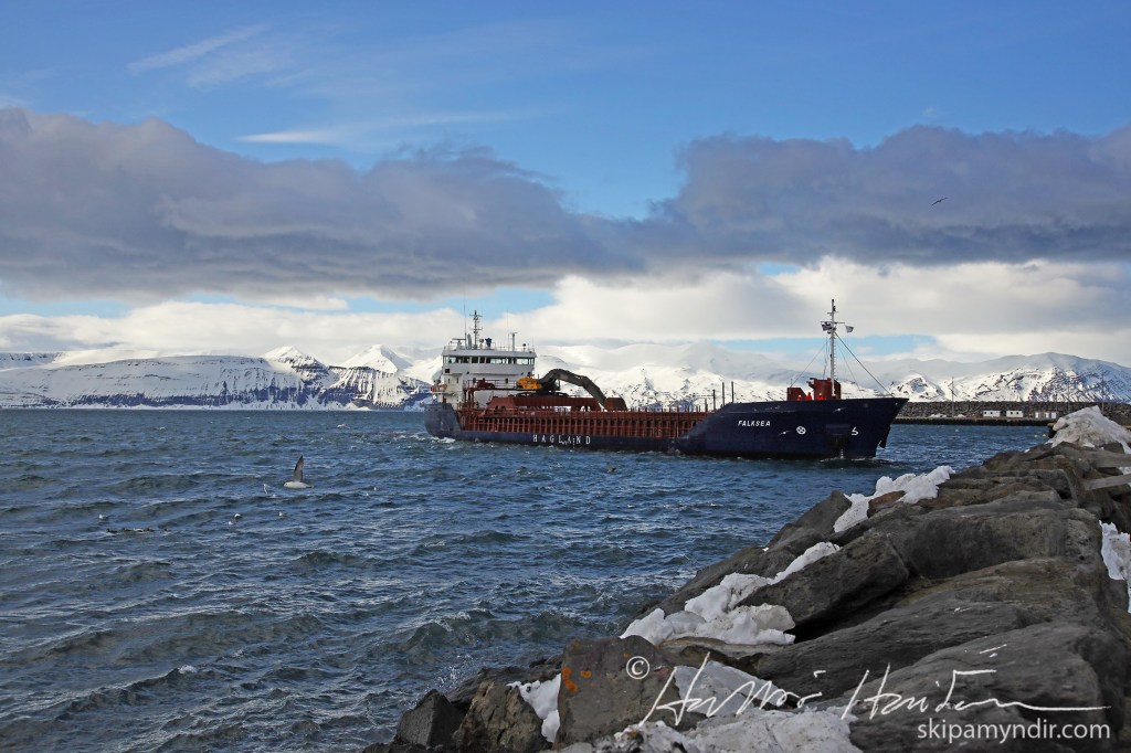 Norska flutningaskipið Falksea kom til Húsavíkur í dag með saltfarm en það kom hingað eftir að hafa losað Dalvík.