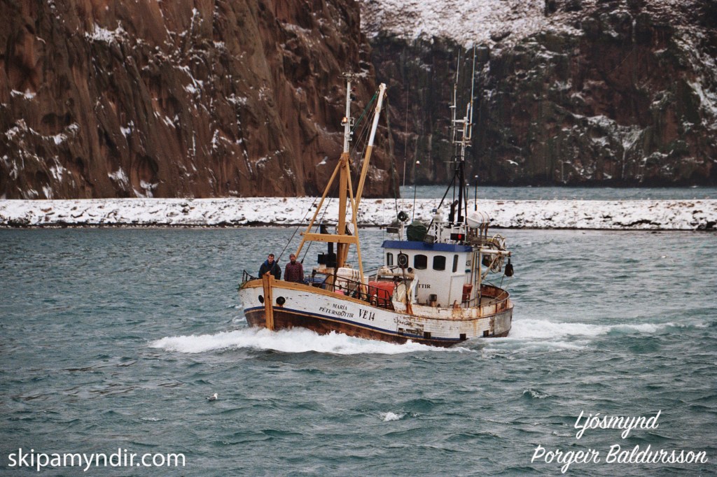 María Pétursdóttir VE 14, sem hér sést koma til hafnar í Vestmannaeyjum, var smíðuð í Bátasmiðjunni Vör h/f á Akureyri árið 1975.
