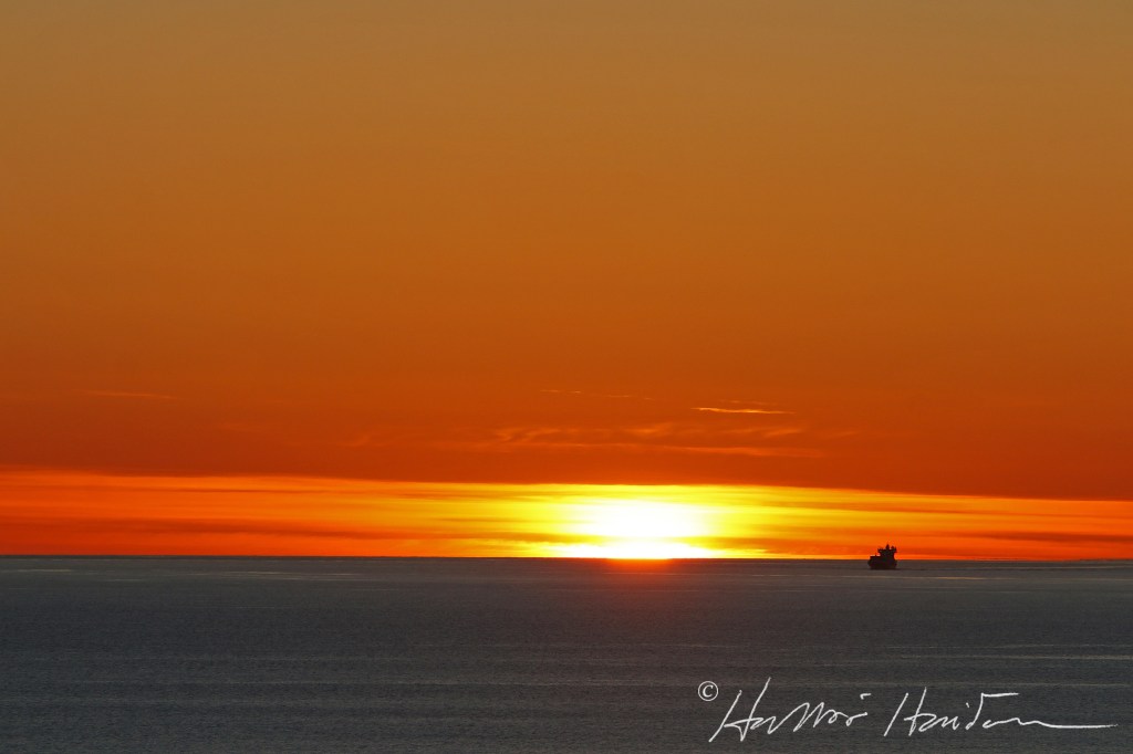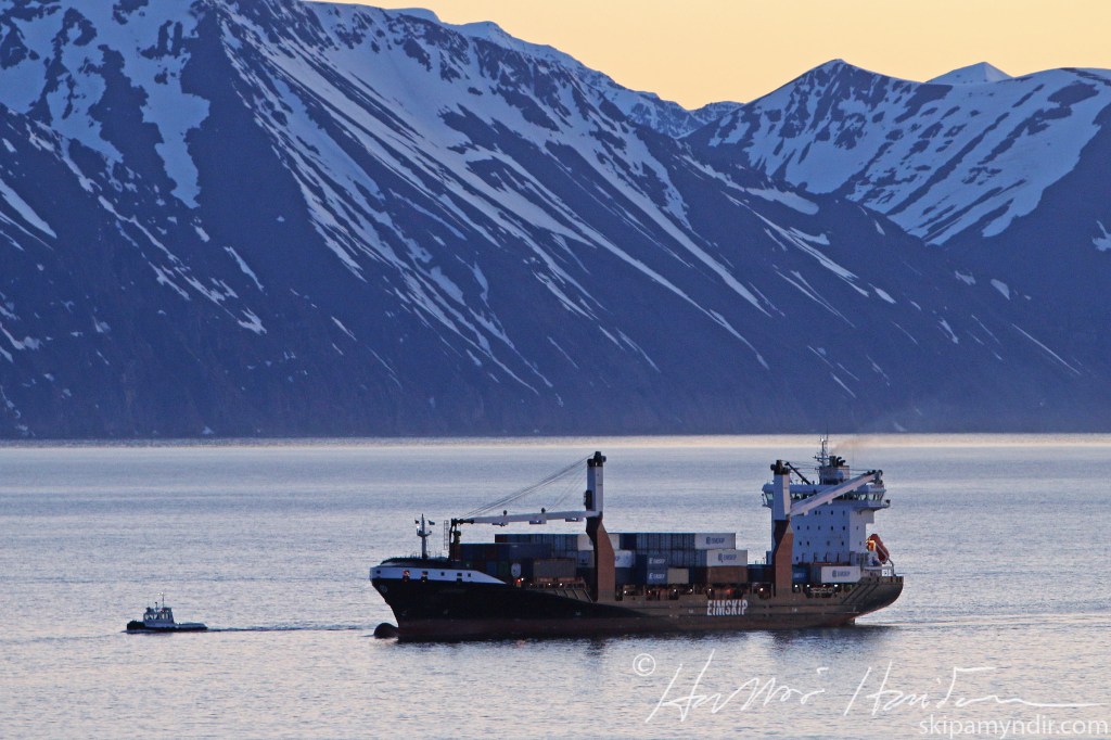 Lagarfoss, skip Eimskipafélgsins, kom til Húsavíkur í gærkveldi og var birtan orðin heldur lítil til að hægt væri að ná góðum myndum.